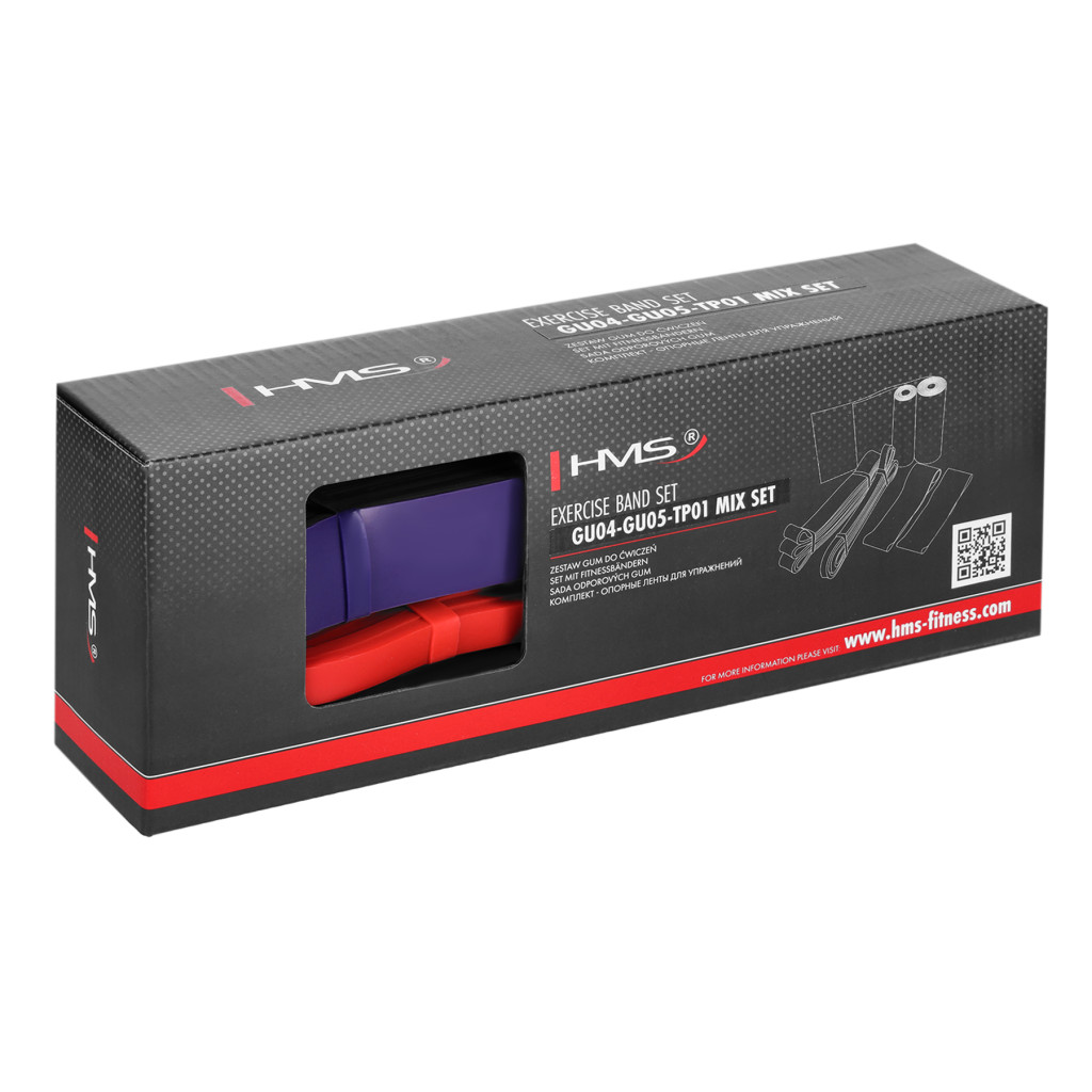 Set 4 posilňovacích gúm HMS, ktoré sú využívané v silovom tréningu, kondičnom tréningu, ale aj v rehabilitačnom cvičení. V silovom tréningu slúžia ako pomoc alebo ako dynamická záťaž. Pri rehabilitácii sú využité, pretože nejde o priamu záťaž, ale guma postupným ťahom vytvára odpor, a to predovšetkým pri úrazoch svalov, šliach a kĺbov.