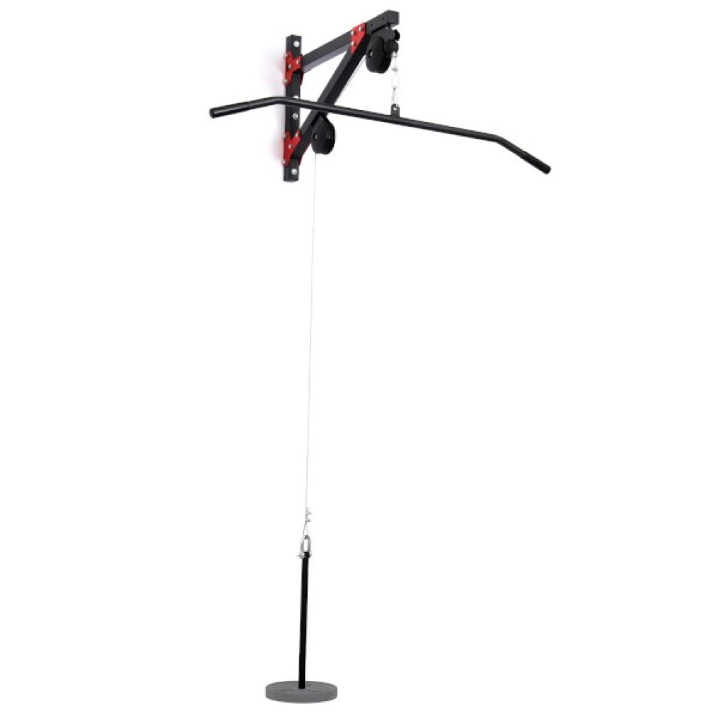 V balení nájdete samotnú konštrukciu kladky, ktorá je vyrobená z oceľového profilu 40 x 40 milimetrov. Oceľové lanko, 2 karabíny, nakladací tŕň s dĺžkou 46 centimetrov a široký adaptér MH-C001. Maximálna nosnosť je 120 kilogramov.