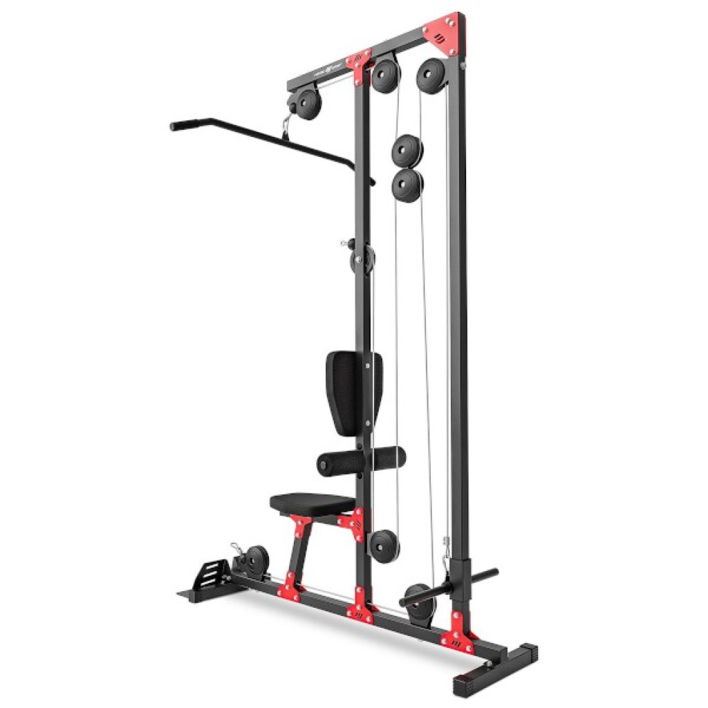 Multifunkčný stroj s hornou a dolnou kladkou MARBO Sport MH-W106 2.0 je robustné, stacionárne zariadenie určené na precvičovanie svalov paží, ramien a chrbta.