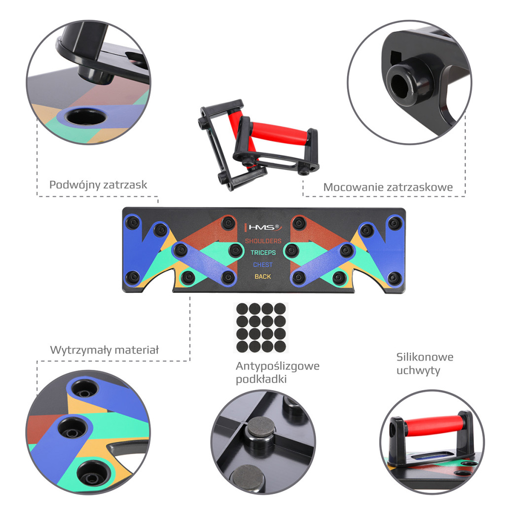 PU10 HMS je multifunkčná, skladacia doska, ktorá umožňuje variabilný tréning kľukov. Doska je symetricky rozdelená na 2 polovice. PU10 obsahuje 5 párov otvorov na umiestnenie dodávaných podpier. Každý pár otvorov umožňuje tréning pod iným uhlom, pričom sa precvičuje iná svalová skupina a to: