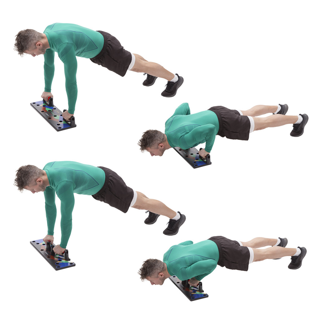 - pri umiestnení podpier do zelených otvorov budete počas klikovania precvičovať tricepsy