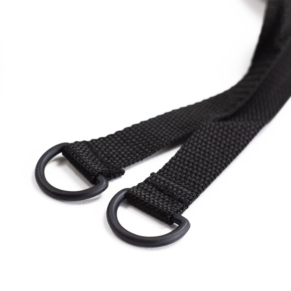 Príčky je možné plynulo posúvať a po nastavení vhodných rozostupov je možné príčky zafixovať pomocou dvoch otvorov v každej z nich. Konce popruhov sú opatrené očkami pre zaistenie proti posunutiu rebríka.