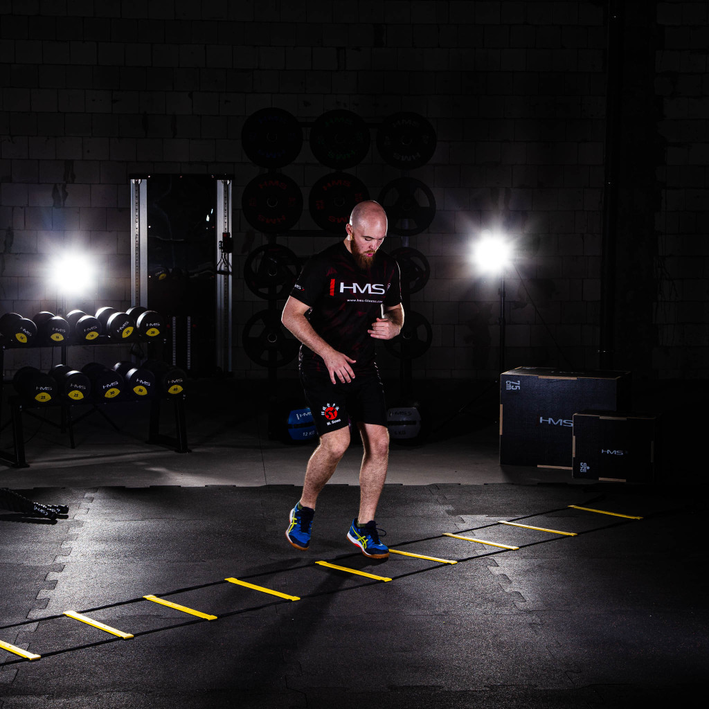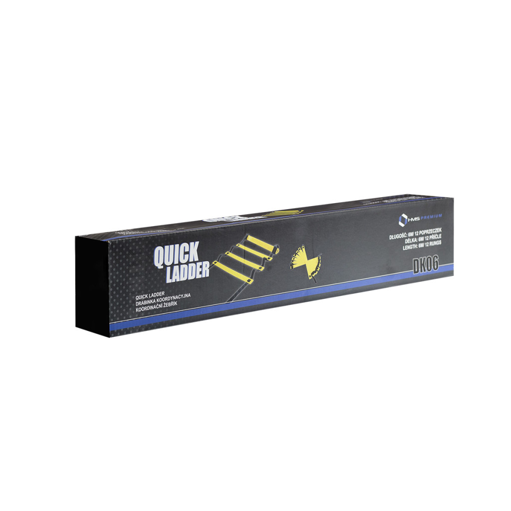 HMS Premium DK06 je pomôcka pre kondičnú prípravu športovcov. Rozvíja tiež rýchlosť, vytrvalosť a koordinačné schopnosti. Tréningový rebrík HMS má 6 metrov a 12 nastaviteľných príčok, čo je ideálny pomer pre kvalitný tréning. DK06 je vhodný pre vnútorné priestory ako je posilňovňa, cvičebná hala a iné, ale aj pre všetky vonkajšie priestory. Súčasťou balenia je aj prenosný vak, takže môžete mať rebrík vždy po ruke.