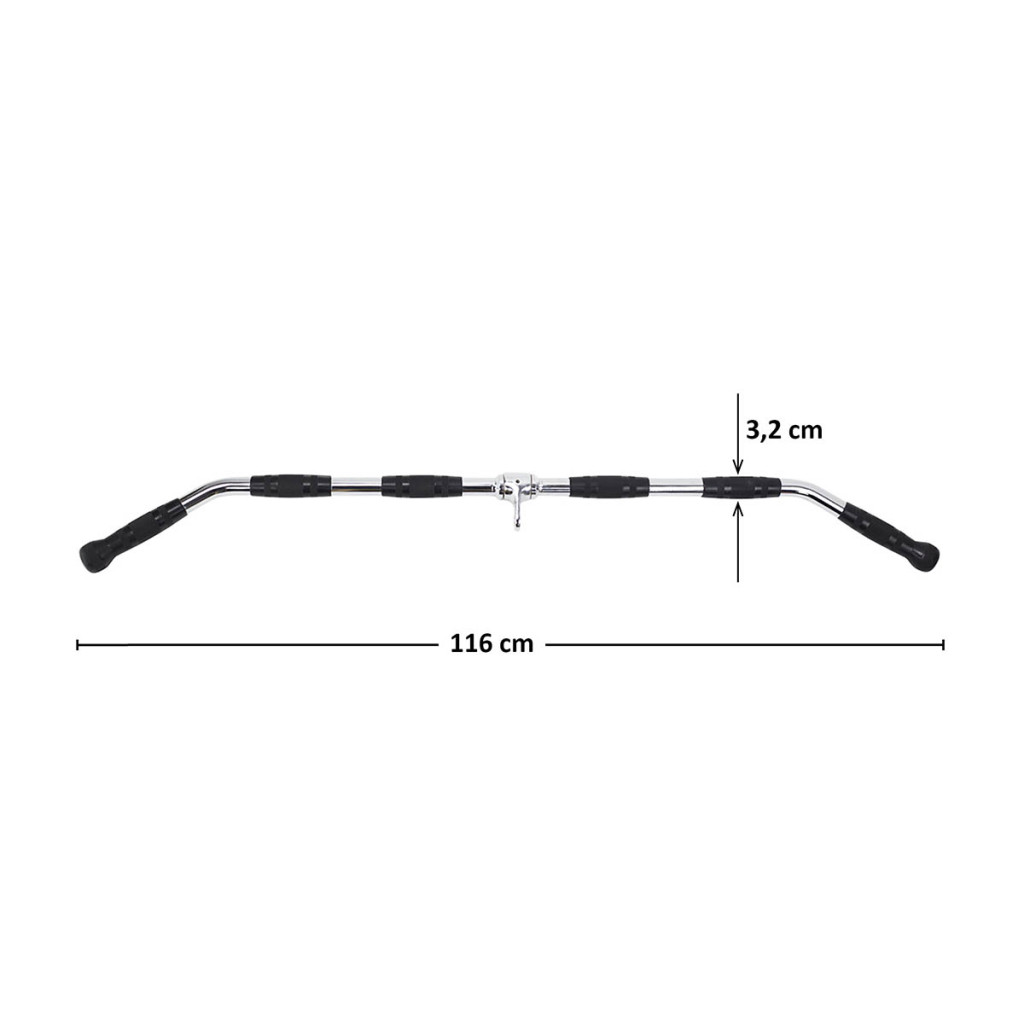 Horná kladka lat bar UW14 pre komplexné precvičenie svalstva hornej polovice tela. Tento adaptér má 6 sád protišmykových rukovätí. Parametre: Dĺžka: 118... Čítať viac