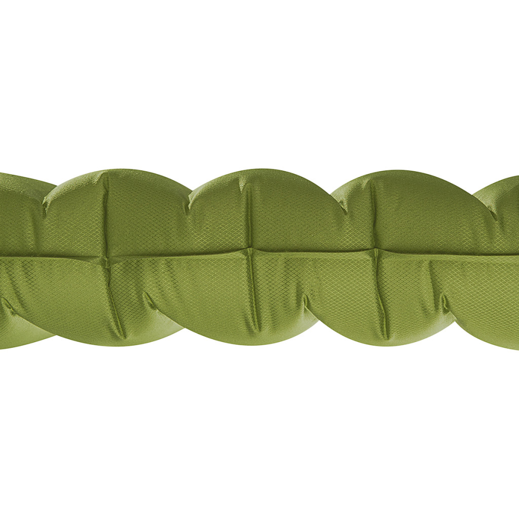 V zloženom stave zaberá karimatka veľmi málo miesta a spôsob skladania je veľmi jednoduchý. Jednoducho otvorte čierny a šedý ventil a karimatku zrolujte, pričom začnite zhora. Nemusíme sa obávať, že by sa sama rozložila, pretože je opatrená popruhom. Súčasťou sady je navyše praktický cestovný obal, do ktorého je možné karimatku uschovať. To výrazne uľahčuje prepravu a zároveň chráni podložku pred poškodením. V kombinácii s nízkou hmotnosťou výrobku to znamená, že si podložku môžeme ľahko zobrať so sebou na akýkoľvek výlet.