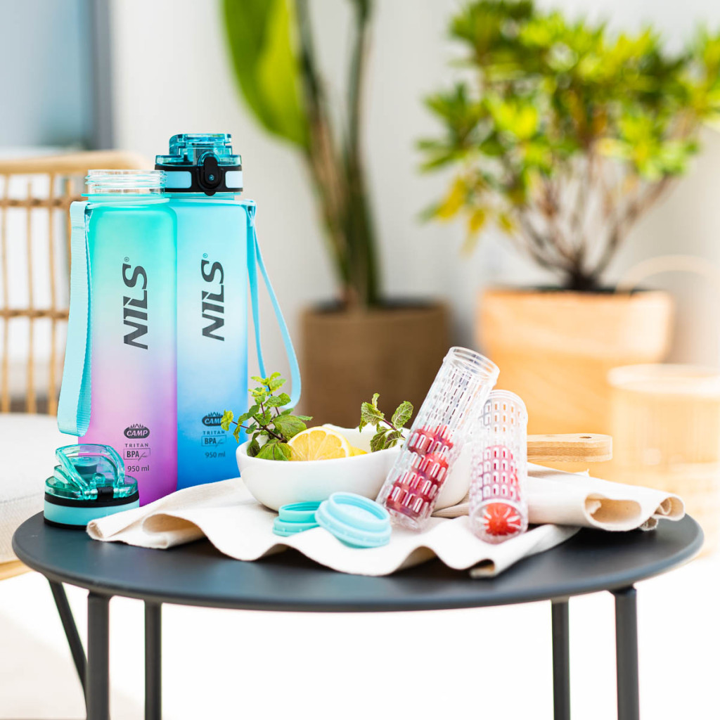 NILS Camp NCD04 je fľaša na vodu s objemom 950 ml a je vyrobená z tritánu.