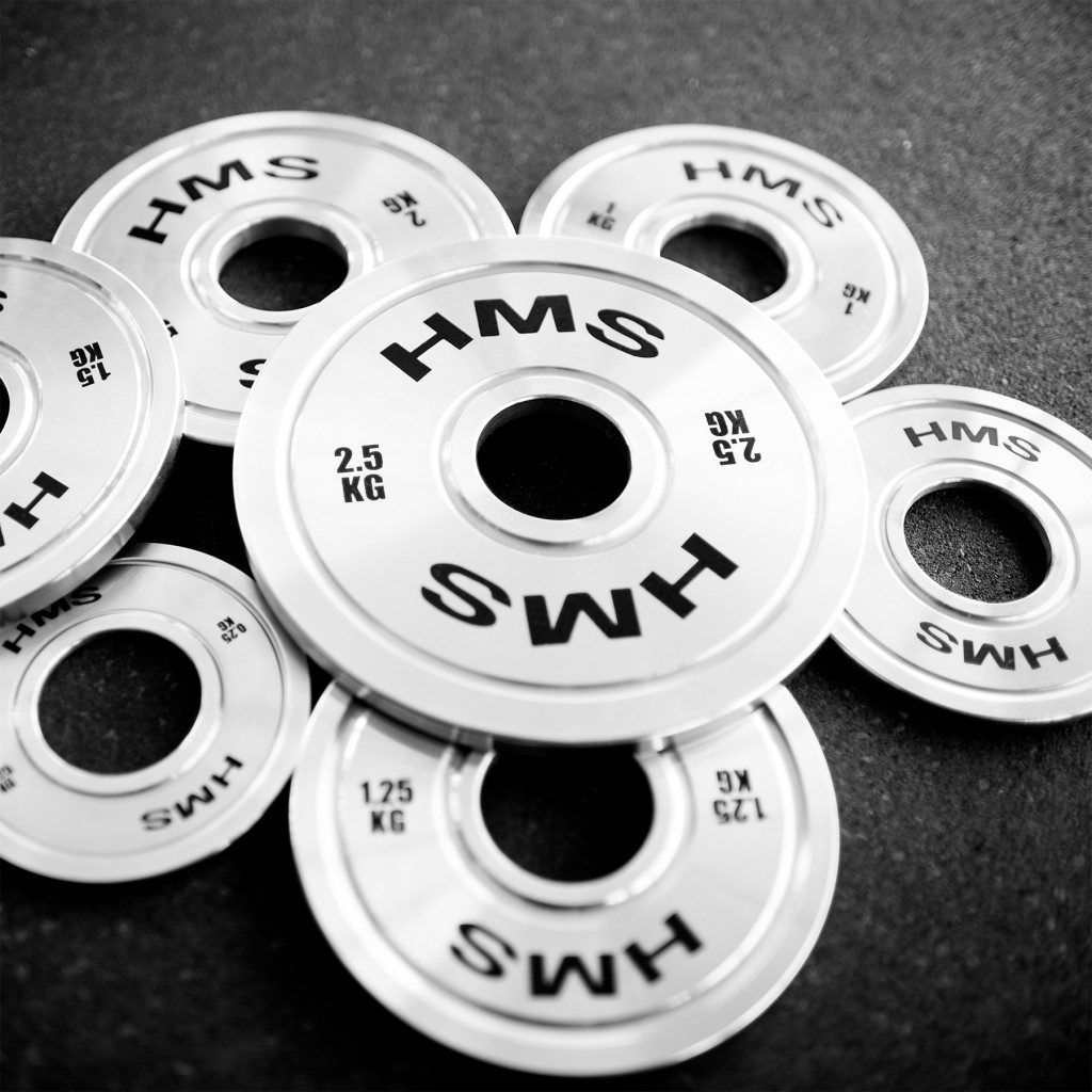 disky v variantoch 5; 10; 15; 20 a 25 kilogramov má farebný pruh zodpovedajúci medzinárodným olympijským štandardom na okraji. To umožňuje rýchlo rozpoznať váhy, čo uľahčuje organizovanie tréningu a dynamických zmien hmotnosti počas série cvičení.