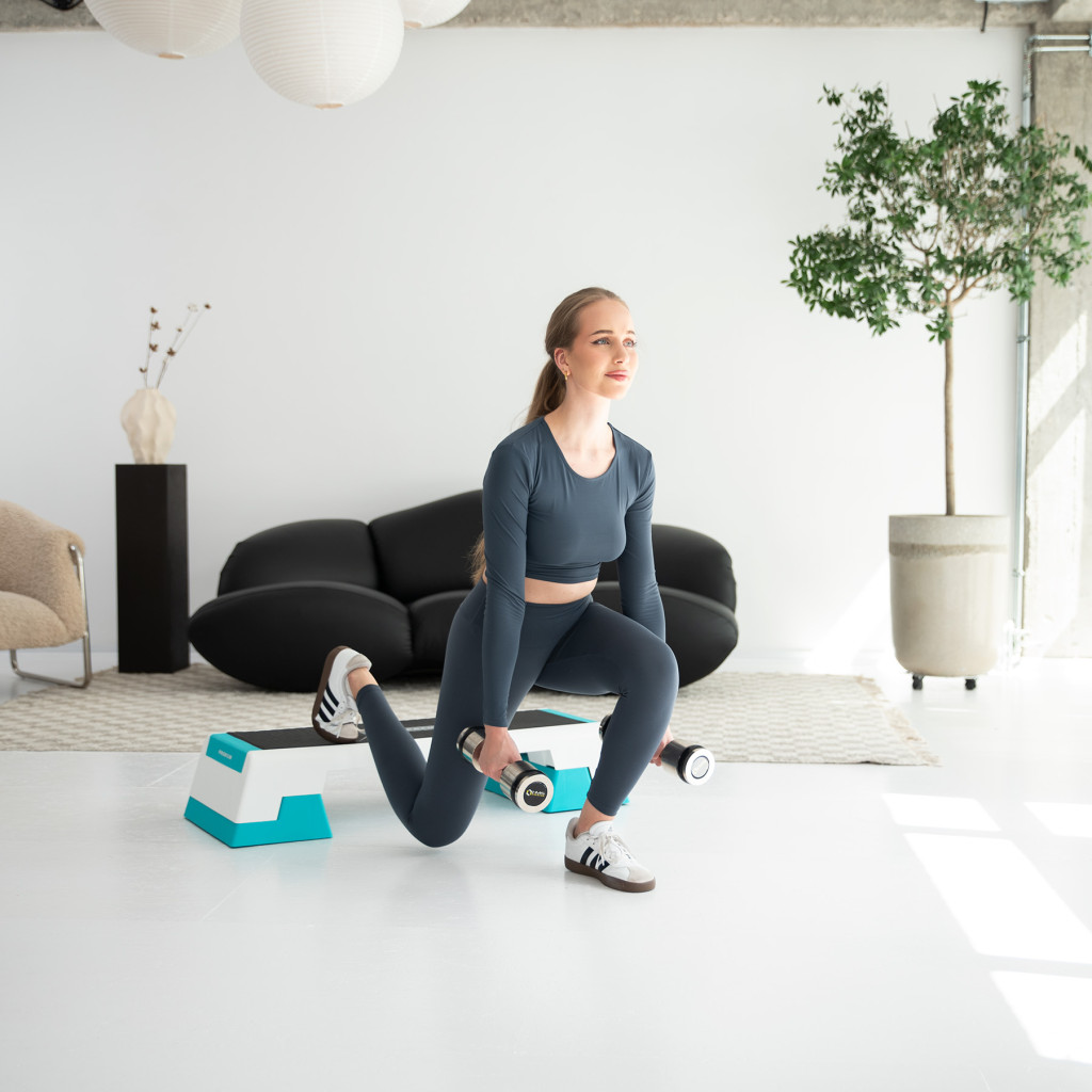 Step je vybavený protišmykovým povrchom, ktorý zaisťuje istý pohyb aj pri dynamickom cvičení. Gumené nožičky zabraňujú posúvaniu stepu a zaručujú stabilitu a bezpečnosť.