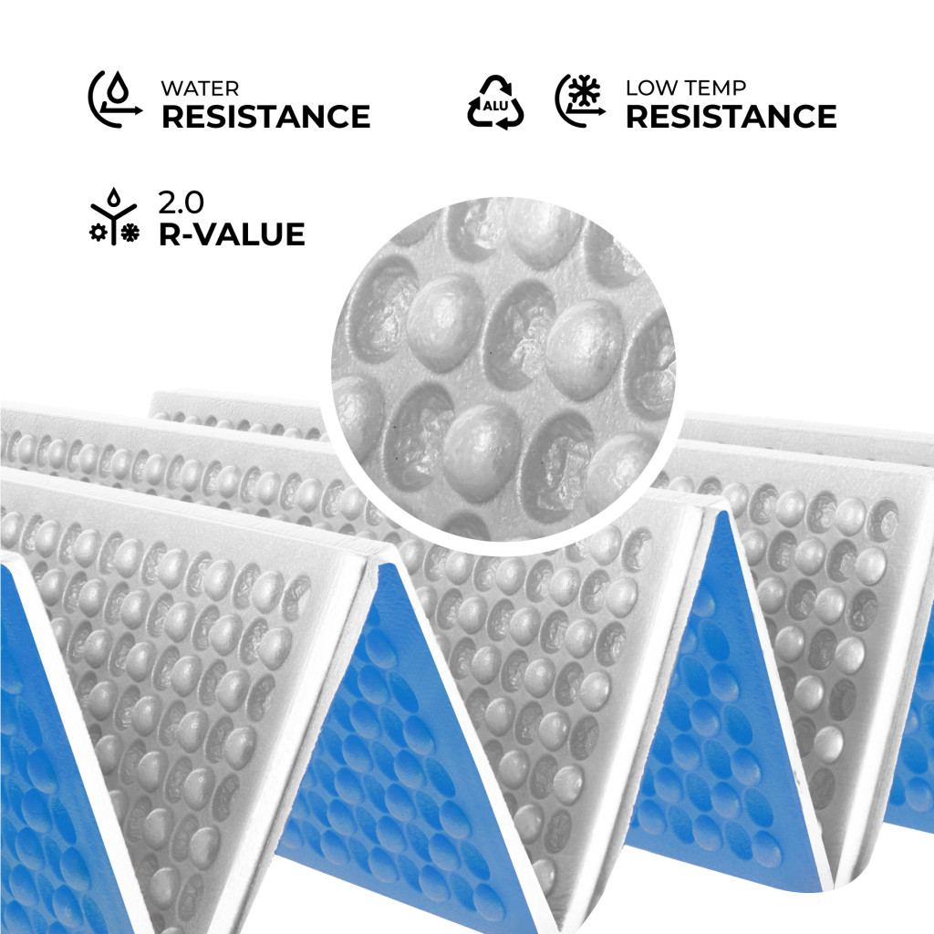 Jadro karimatky je vyrobené z technickej peny XPE – materiálu, ktorý sa vyznačuje nízkou hmotnosťou, vynikajúcou odolnosťou proti deformácii a mechanickému poškodeniu. Pena XPE nenasáva vodu, čo znamená, že karimatka zostáva suchá a pripravená na použitie aj v náročných terénnych podmienkach.