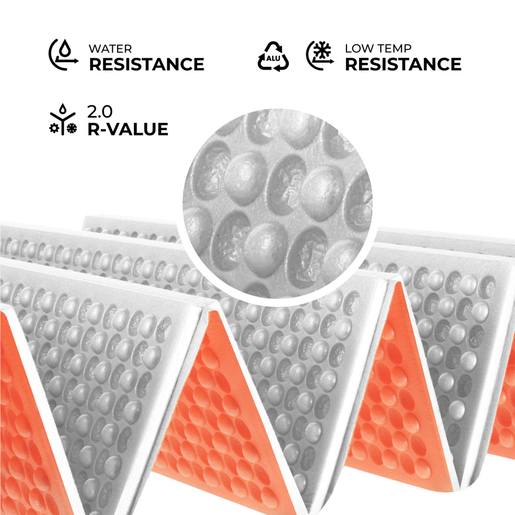 Jadro karimatky je vyrobené z technickej peny XPE – materiálu, ktorý sa vyznačuje nízkou hmotnosťou, vynikajúcou odolnosťou proti deformácii a mechanickému poškodeniu. Pena XPE nenasiakuje vodu, čo znamená, že karimatka zostáva suchá a pripravená na použitie aj v náročných terénnych podmienkach.
