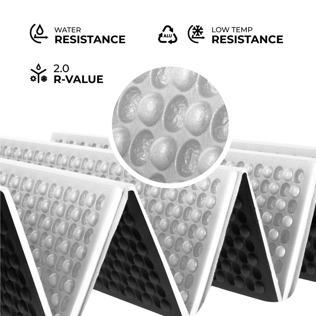 Jadro karimatky je vyrobené z technickej peny XPE – materiálu, ktorý sa vyznačuje nízkou hmotnosťou, vynikajúcou odolnosťou proti deformácii a mechanickému poškodeniu. Pena XPE nesaje vodu, čo znamená, že karimatka zostáva suchá a pripravená na použitie aj v náročných terénnych podmienkach.