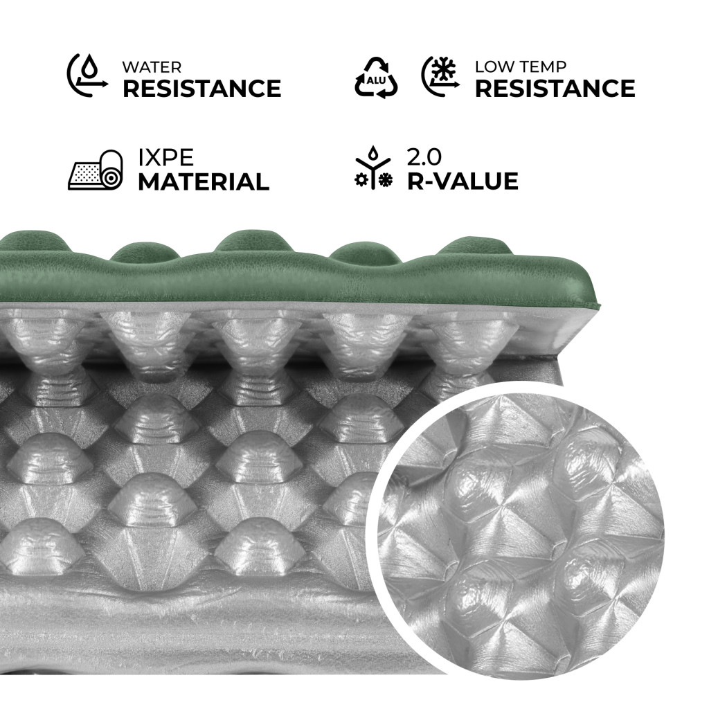 Podložka je vyrobená z vysokokvalitnej peny IXPE – materiálu, ktorý sa vyznačuje zvýšenou pružnosťou a odolnosťou, a zároveň zostáva ľahký, odolný a nesaje vodu. IXPE si zachováva svoj tvar aj pri intenzívnom používaní, čo zaručuje dlhodobý komfort.
