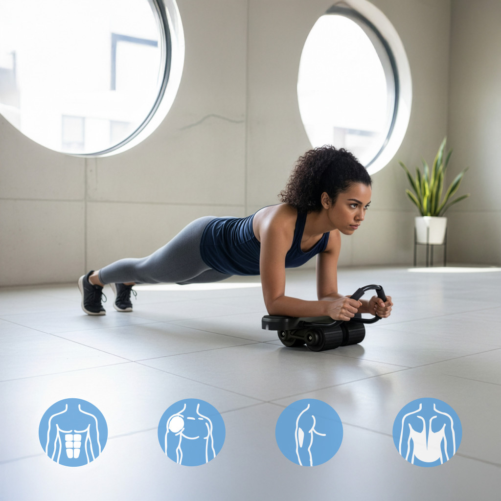 Štyri gumové, protišmykové kolesá zabezpečujú plynulý pohyb aj na hladkej podlahe. Konštrukcia rovnomerne rozkladá tlak, vďaka čomu efektívne posilňuješ core bez zbytočnej záťaže ramien.