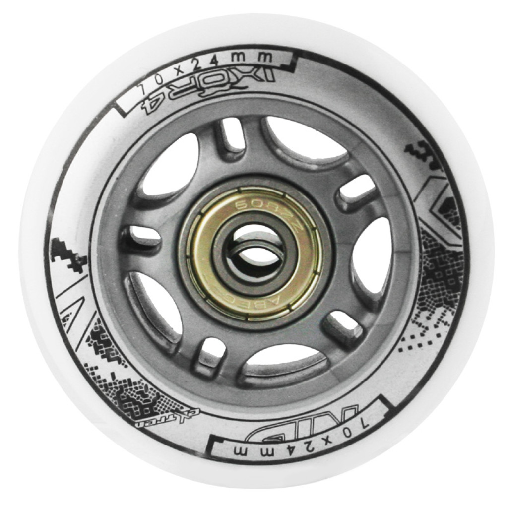 Náhradná sada koliesok veľkosti 70x24 mm mliečnej farby a tvrdosťou 82 A s ložiskami ABEC 7.