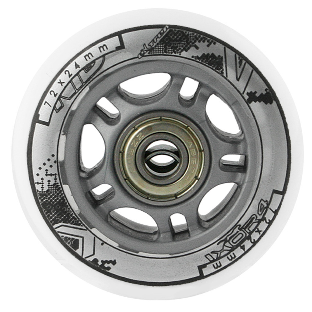 Náhradná sada koliesok veľkosti 72x24 mm mliečnej farby a tvrdosťou 82 A s ložiskami ABEC 7.
