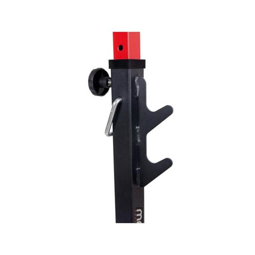 Stojany pod veľkú činku so zarážkami MARBO MS-S108 sú vyrobené z veľmi kvalitnej ocele, ktorá umožňuje bezpečné zaťaženie 300 kg. Skvelá pomôcka pre tých najnáročnejších cvičencov, ktorým záleží na prevedení a funkčnosti, ako aj na pútavom dizajne. Môžu byť použité samostatne alebo ako držiaky počas cvičenia na posilňovacej lavici. Veľkou pomôckou sú tŕne na závažie, ktoré sú umiestnené hneď po ruke. Toto riešenie tiež umožňuje udržiavať poriadok na stanovišti. Tŕne sú vysoké 22 cm a majú priemer 25 mm.
