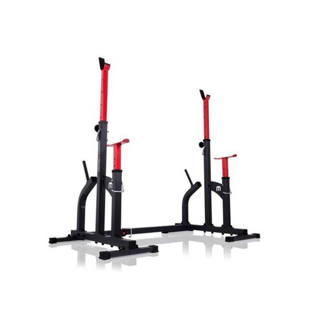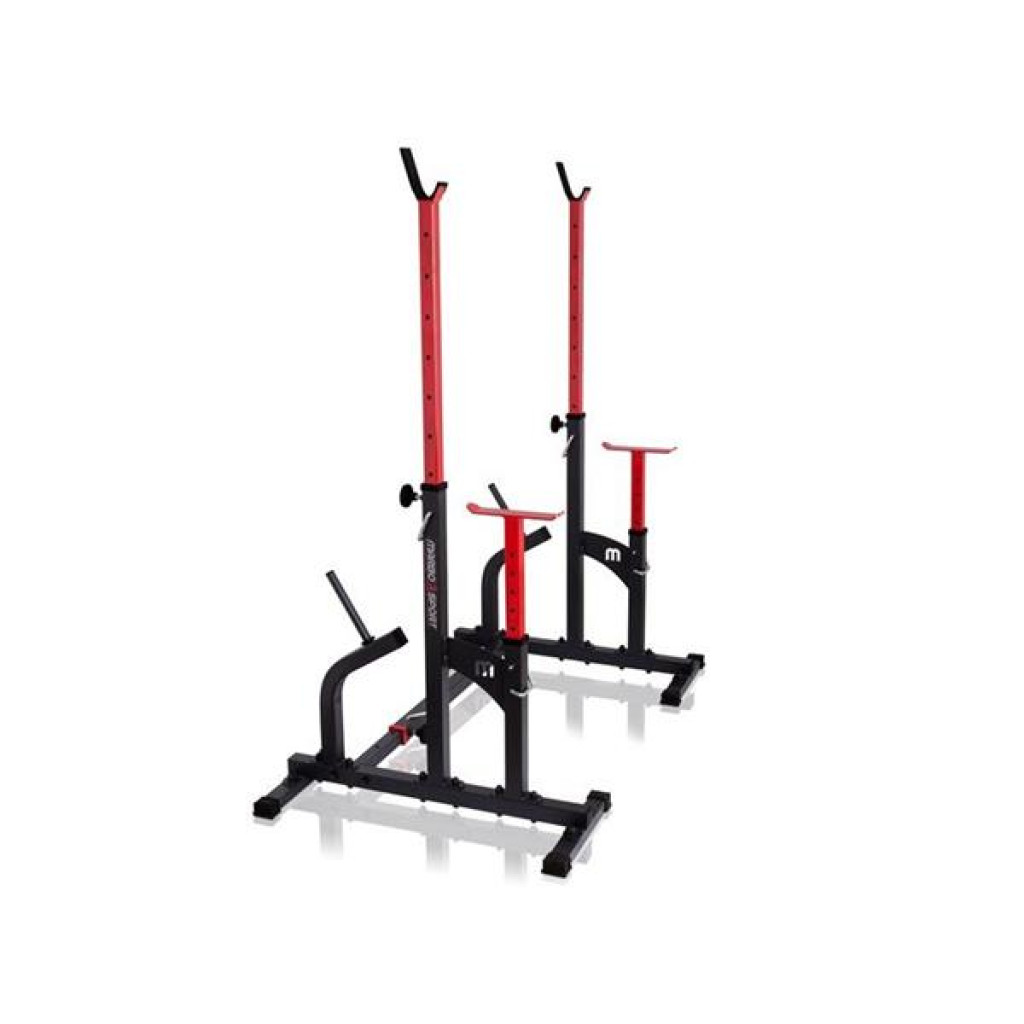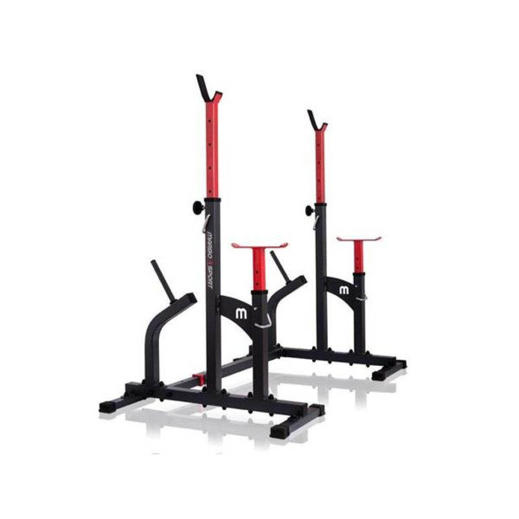 Kombinované stojany s istiacej funkcionalitou známej značky MARBO MS-S104. Stojany sú vyrobené z veľmi kvalitnej ocele. Profil konštrukcie je 50x50x2mm. Výšku je možné nastaviť do 8 úrovní a istenie do 6 úrovní. Navyše vďaka trojstupňovej regulácii šírky tohto zariadenia, ideálne prispôsobíte dĺžku Vašej činky. Maximálna záťaž na stojan je 350 kg.
