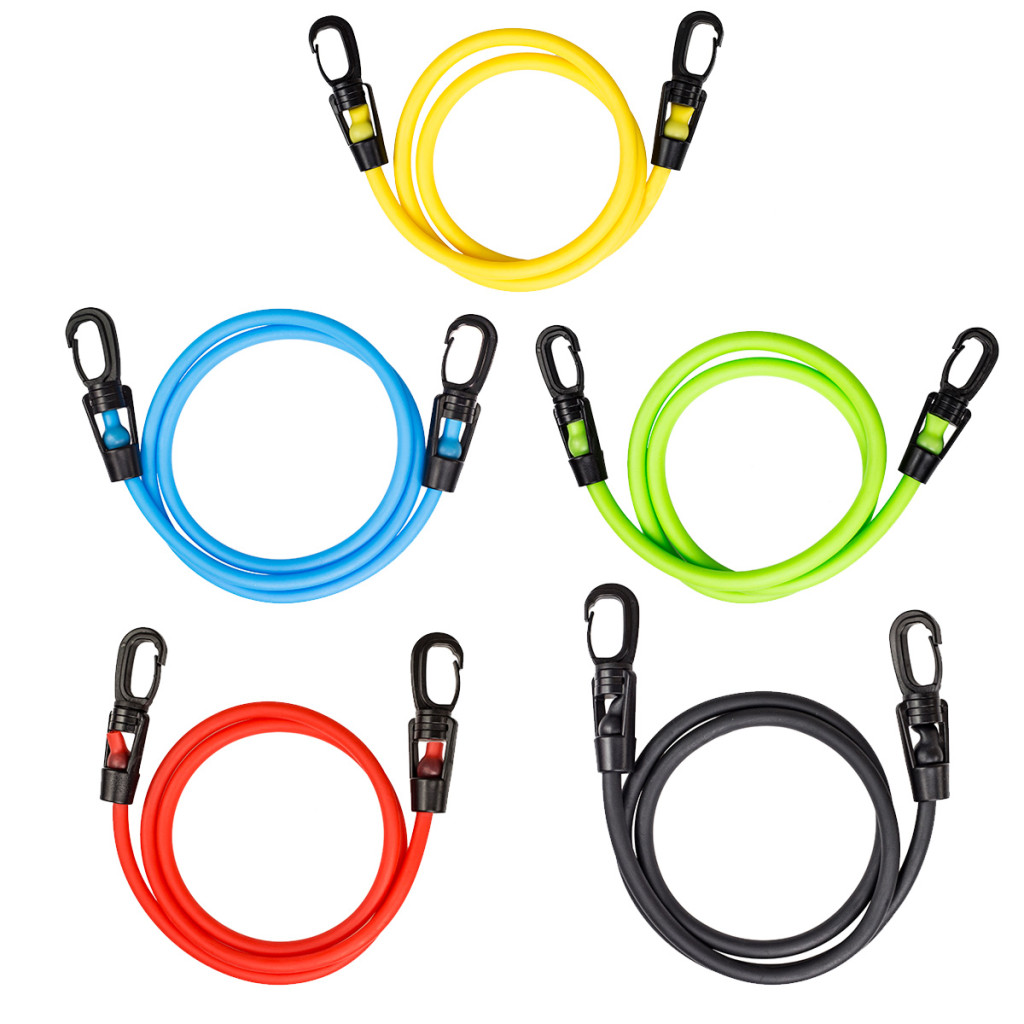 Každý pár gúm má inú tuhosť, ktorá vám umožní vybrať si rôzne úrovne intenzity cvičenia. Na každej gume môže byť rukoväť, čo umožňuje realizáciu komplexného tréningu všetkých svalových skupín.