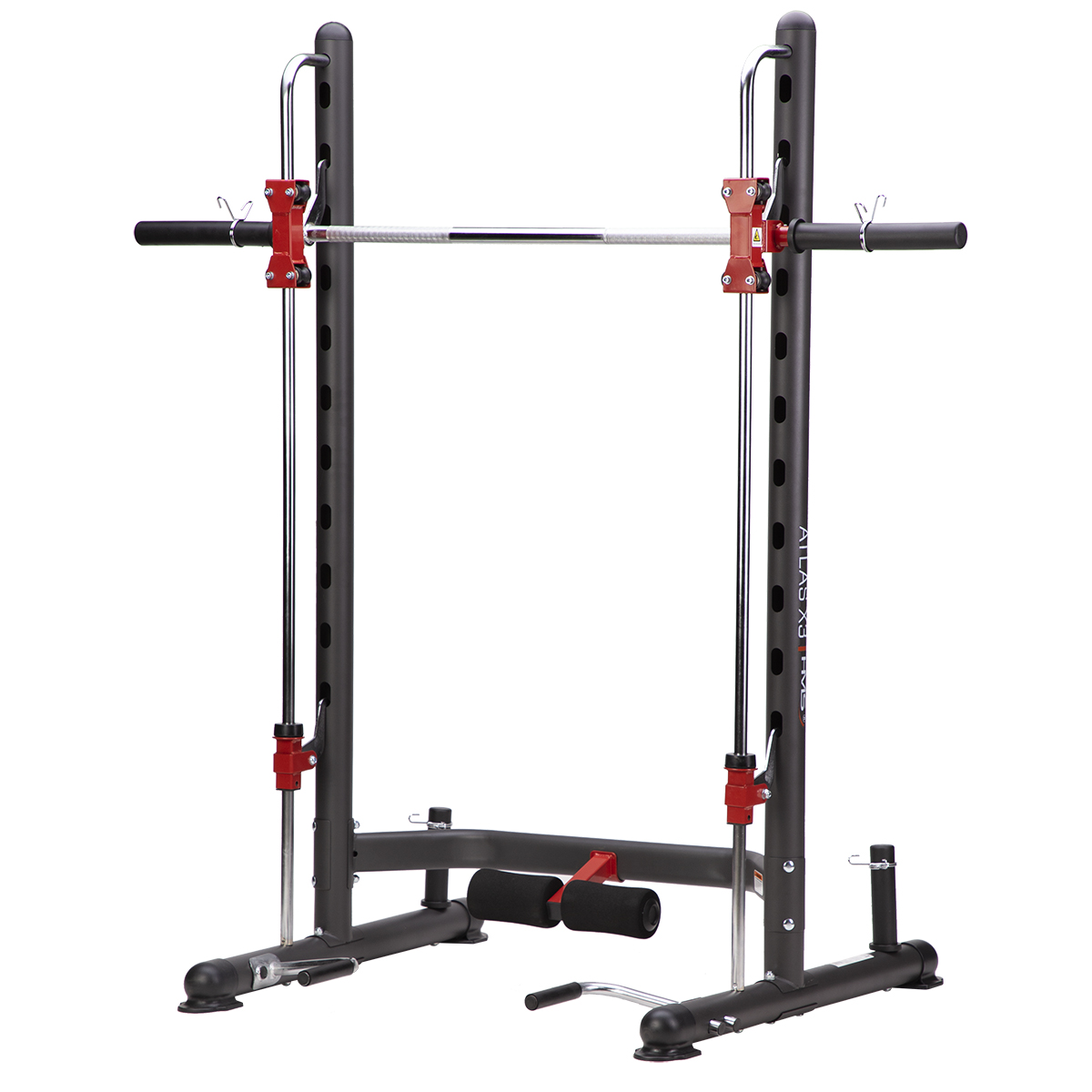 Multipress HMS ATLAS X3 je ideálnym nástrojom pre všetkých, ktorí chcú začať alebo už majú skúsenosti so silovým tréningom. Hlavnou charakteristikou každého multipressu sú vodiace lišty, po ktorých sa pohybuje vzpieračská os s háčikmi. Tieto háčiky zapadajú do otvorov v konštrukcii a tento systém má hneď dve funkcie: