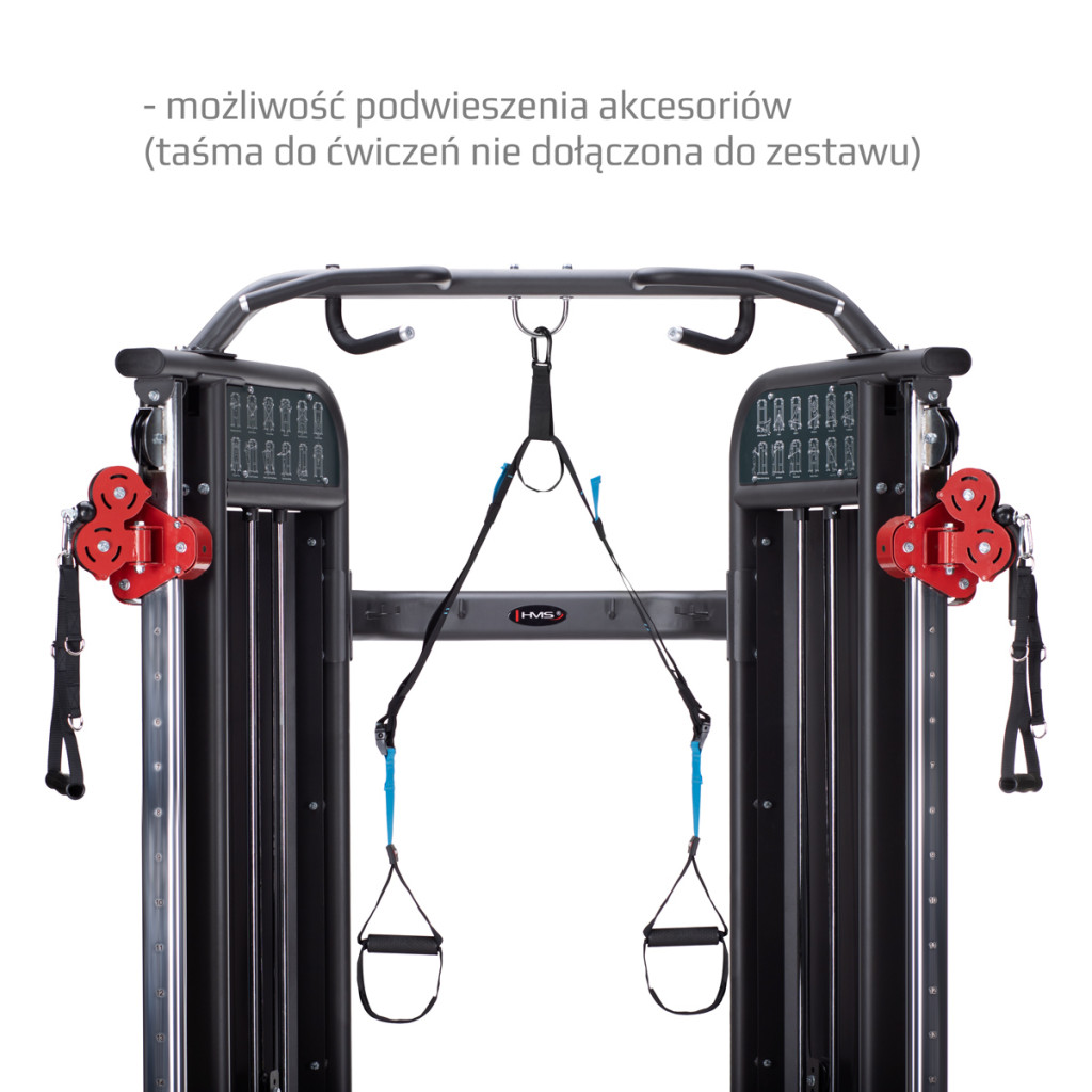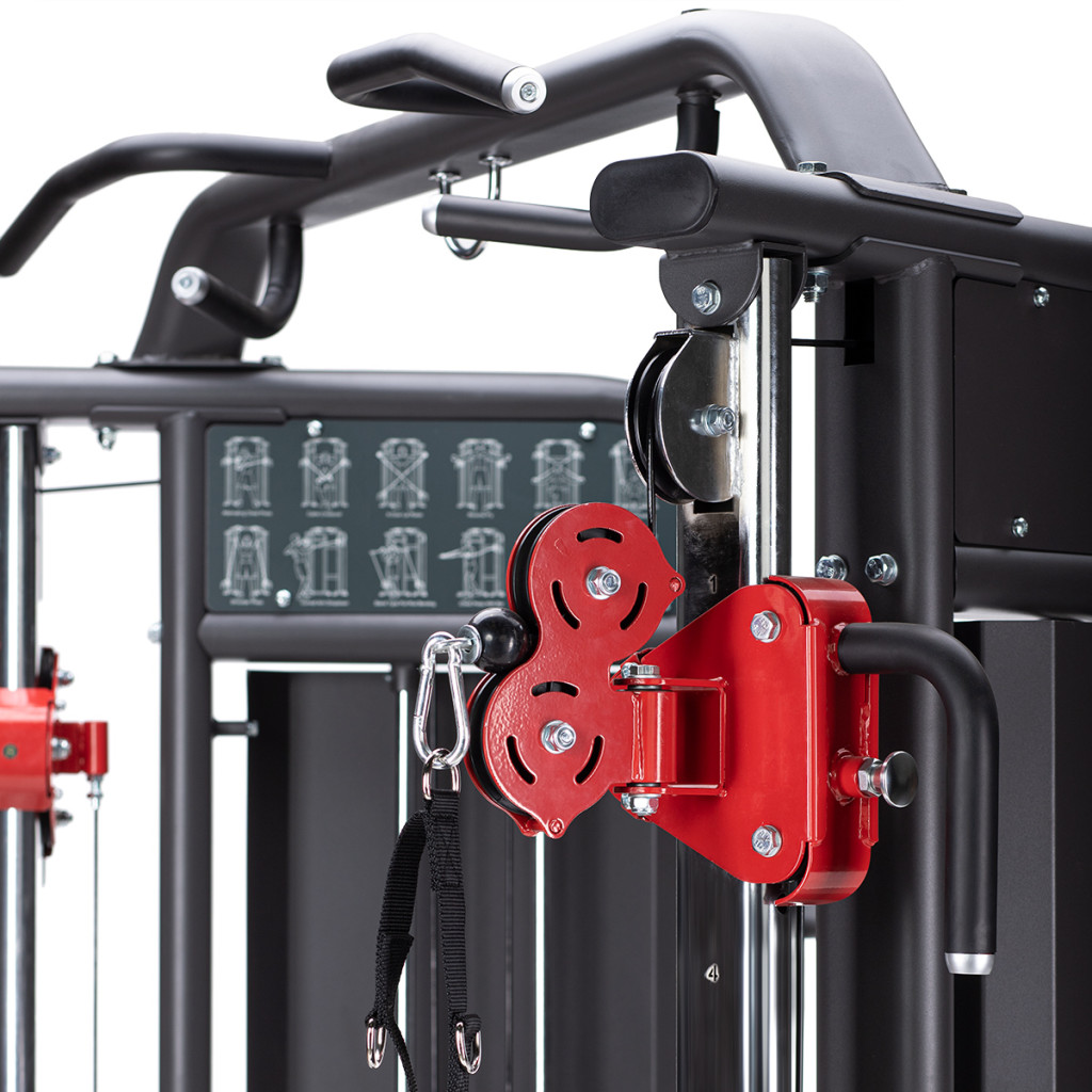 Dve posuvné kladky posilňovacieho stroja HMS ARES 1 vám dávajú možnosť vykonávať neobmedzený počet cvikov pre všetky svalové partie. Jeho ergonomický tvar ponúka dostatočný priestor na cvičenie, či už používate jednu kladku, alebo obe naraz. Pri správnom nastavení ho môžu ľahko používať dve osoby súčasne.