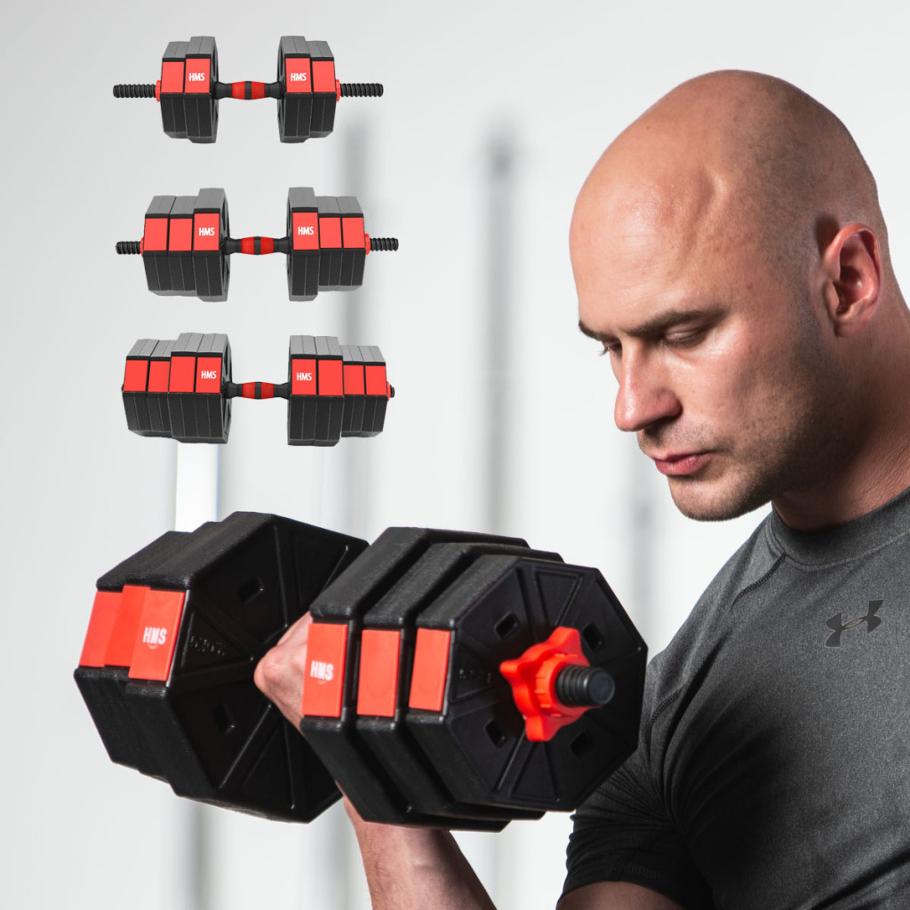 Kompletná nakladacia sada dvoch jednoručných a jednej obojručnej činky o celkovej hmotnosti 40 kilogramov, to je HMS SGC40. Nakladacie činky patria k základnému vybaveniu každej domácej posilňovne.
