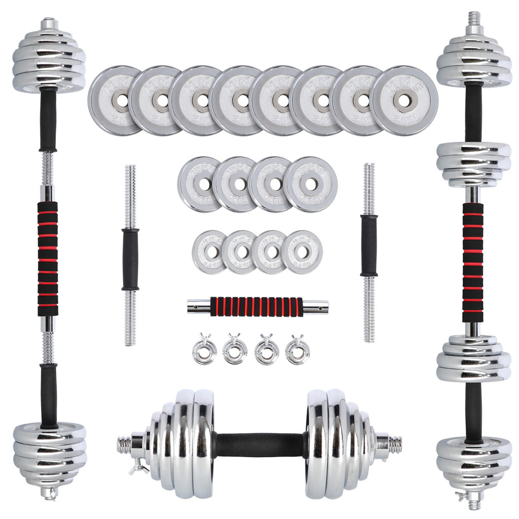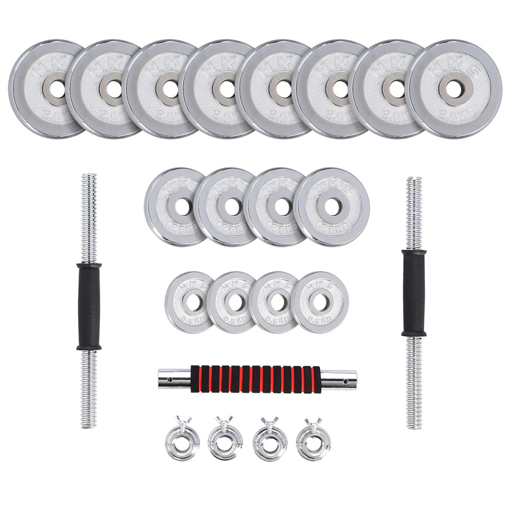 Špeciálny spojovací diel je na stranách opatrený závitmi, do ktorých sa jednoducho vsunú obe činky. Sada HMS STC30 je prvým modelom z našej ponuky, ktorý umožňuje toto riešenie, ktoré šetrí náklady a miesto vo vašej domácej posilňovni. Sada obsahuje 2 krátke, nakladacie osi opatrené ergonomickým úchopom, spojovací diel, 4 zámky a 16 kotúčov.
