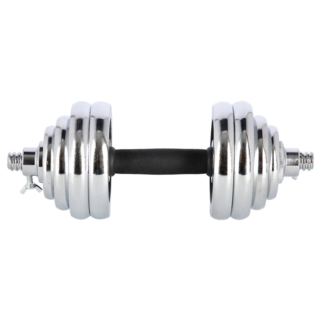 Činky sú vyrobené z vysoko kvalitnej, chrómovanej ocele, ktorá je zárukou dlhej životnosti. Kotúče sa proti posunutiu zaisťujú skrutkovacími zámkami, ktoré sú dodatočne istené skrutkou s krídlovou maticou.