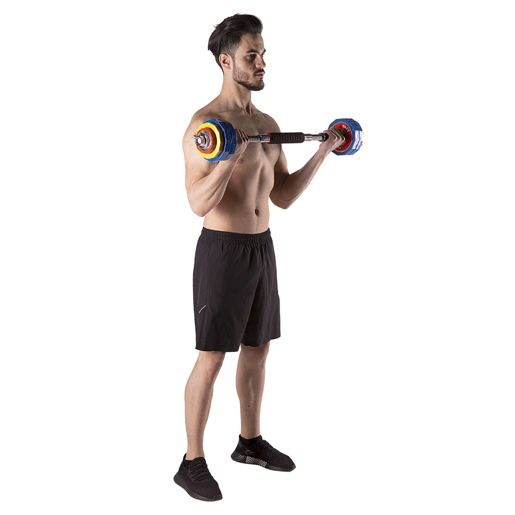 Činky sú vyrobené z vysoko kvalitnej, chrómovanej ocele, ktorá je zárukou dlhej životnosti. Kotúče sú pokryté vrstvou PVC, ktoré chráni ako podlahu, tak samotné kotúče pred poškodením v prípade nechceného upustenia činky. Kotúče sa proti posunutiu zabezpečujú skrutkovacími zámkami, ktoré sú dodatočne istené skrutkou s krídlovou maticou.