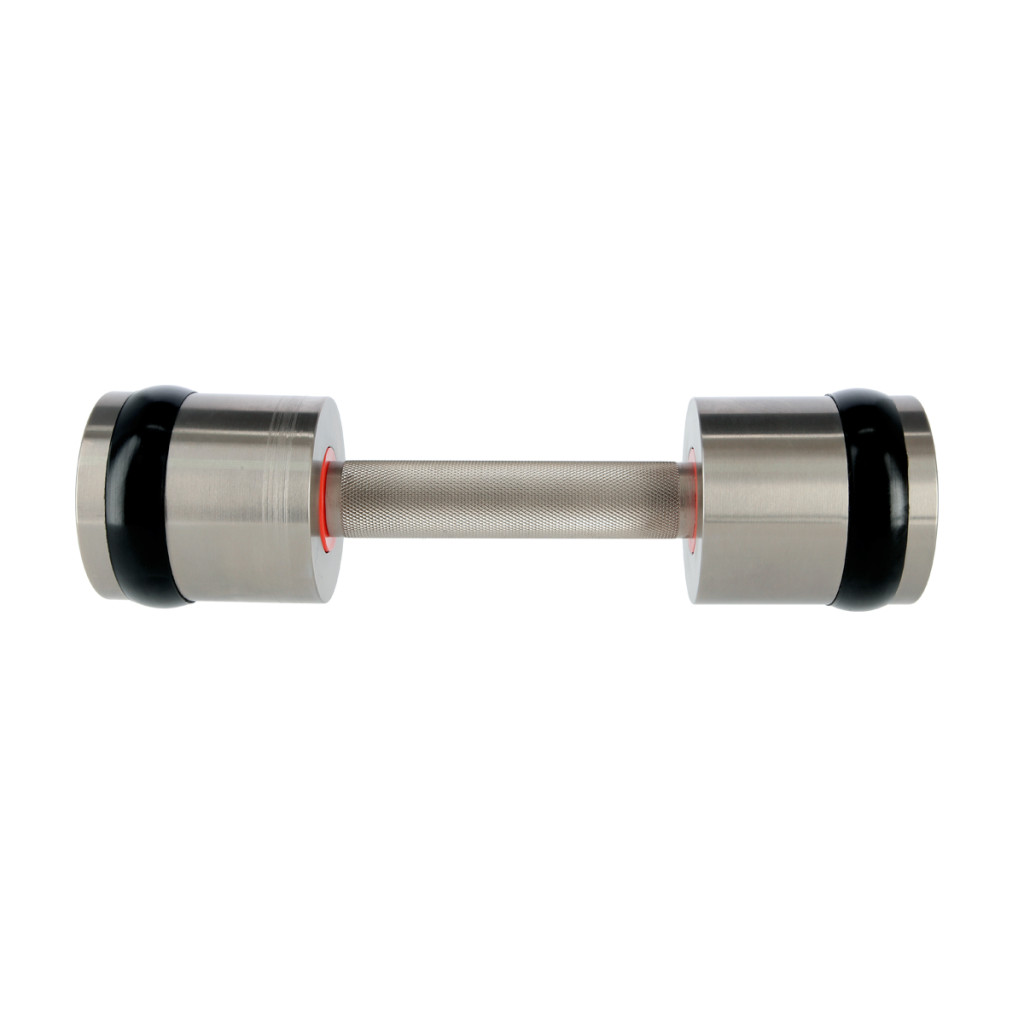 Ako materiál je použitá vysoko kvalitná chrómovaná oceľ, ktorá zaručuje dlhú životnosť, odolnosť voči poškodeniu a zabraňuje oxidácii. Činky sú opatrené mriežkovanou rukoväťou pre pevný a istý úchop. Na rozšírenej časti činiek je navlečený silikónový krúžok, ktorý chráni ako činku, tak podlahu pred poškodením.