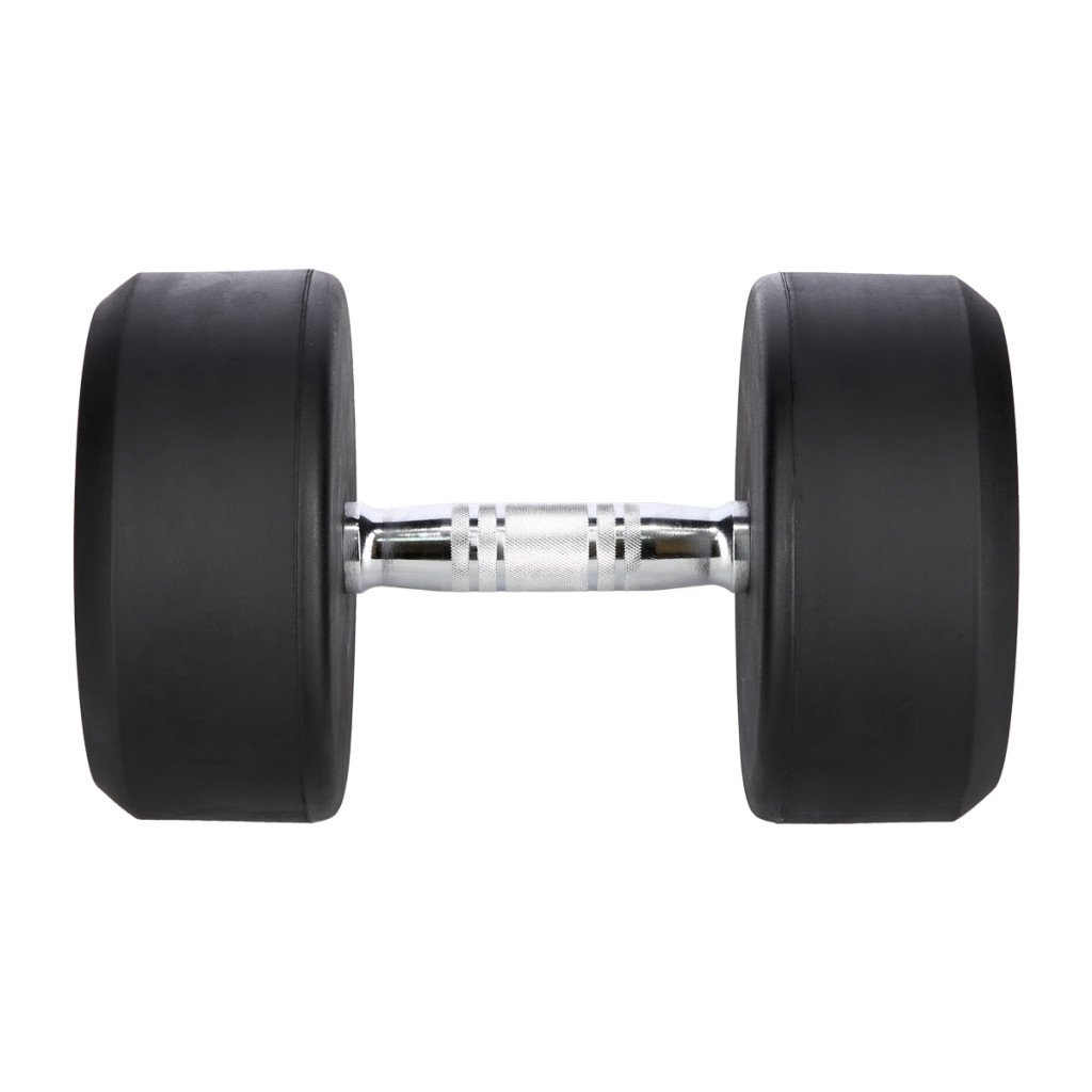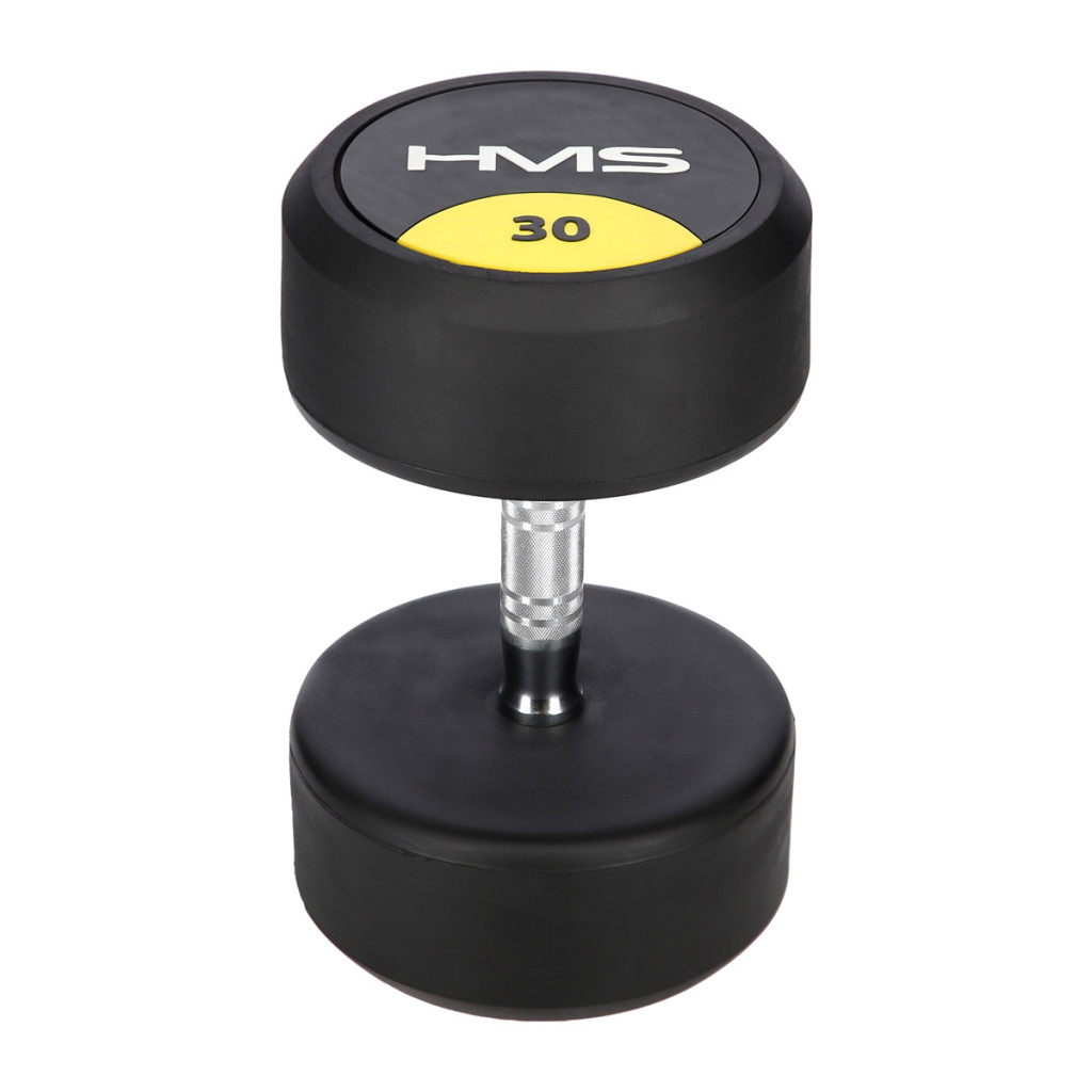 30-kilogramová jednoručná činka HMS HG Pro je určená na profesionálne použitie ako doma, tak aj v posilňovni. Závažie tvorí liatinový odliatok pokrytý hrubou vrstvou gumy, ktorá ochráni činku aj podklad pred poškodením. Na čelnej strane je značka HMS a údaj o hmotnosti v kilogramoch. Rukoväť je vyrobená z chrómovanej ocele a pre pohodlný úchop má tvar suda s vrúbkovaným povrchom.
