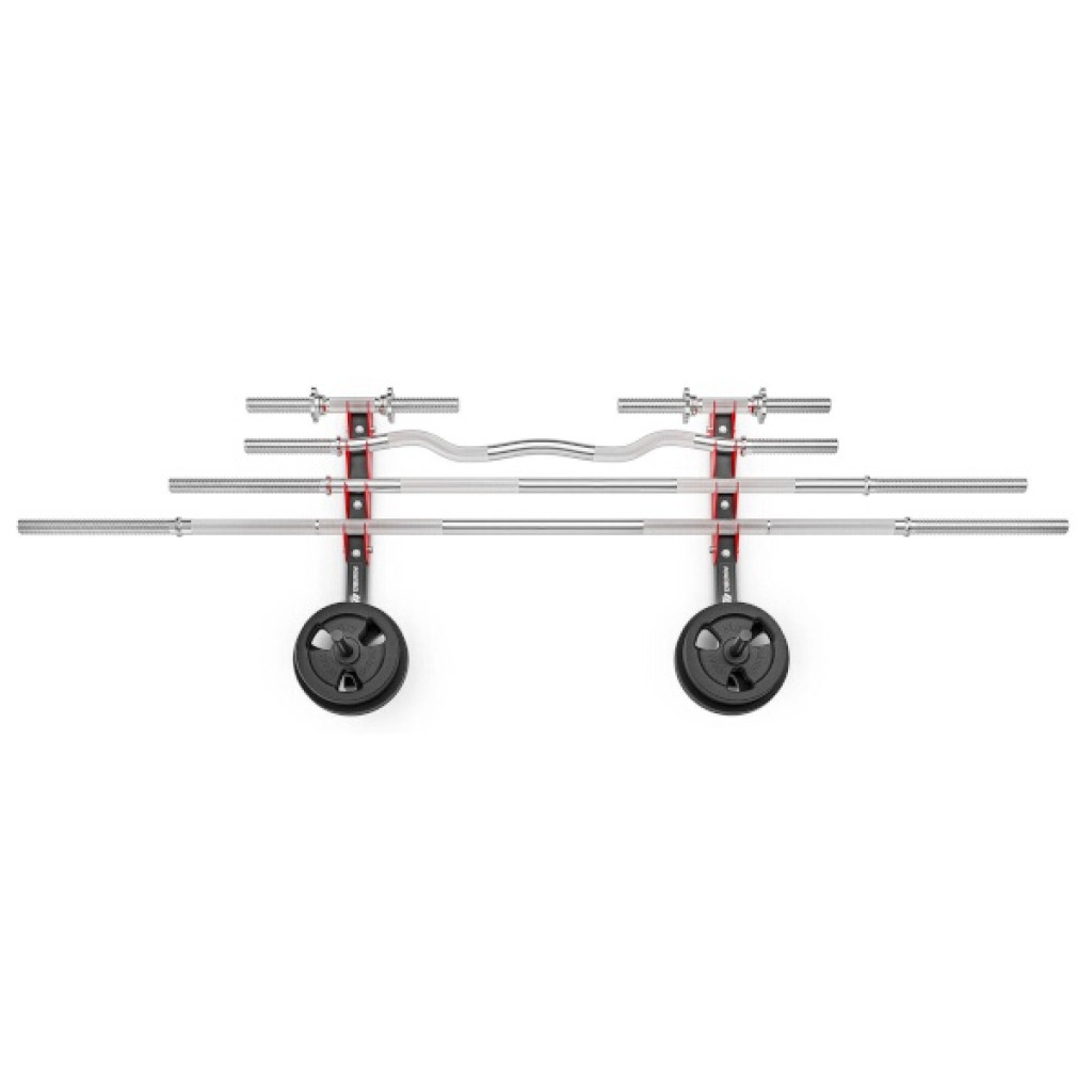 Konštrukčne ide o 2 kusy oceľových profilov určených na montáž na stenu, pričom každý profil sa pripevní pomocou 4 kotiev. Kotviaci materiál nie je súčasťou dodávky a je nutné zvoliť vhodný druh podľa materiálu steny. Po montáži získame 4 páry držiakov na osi a 2 trne na odkladanie závaží. Do držiaka teda môžeme odložiť až 4 obojručné osi alebo až 8 jednoručných hriadeľov. Trne na odkladanie závaží majú dĺžku 21 centimetrov a priemer 2,5 centimetra.