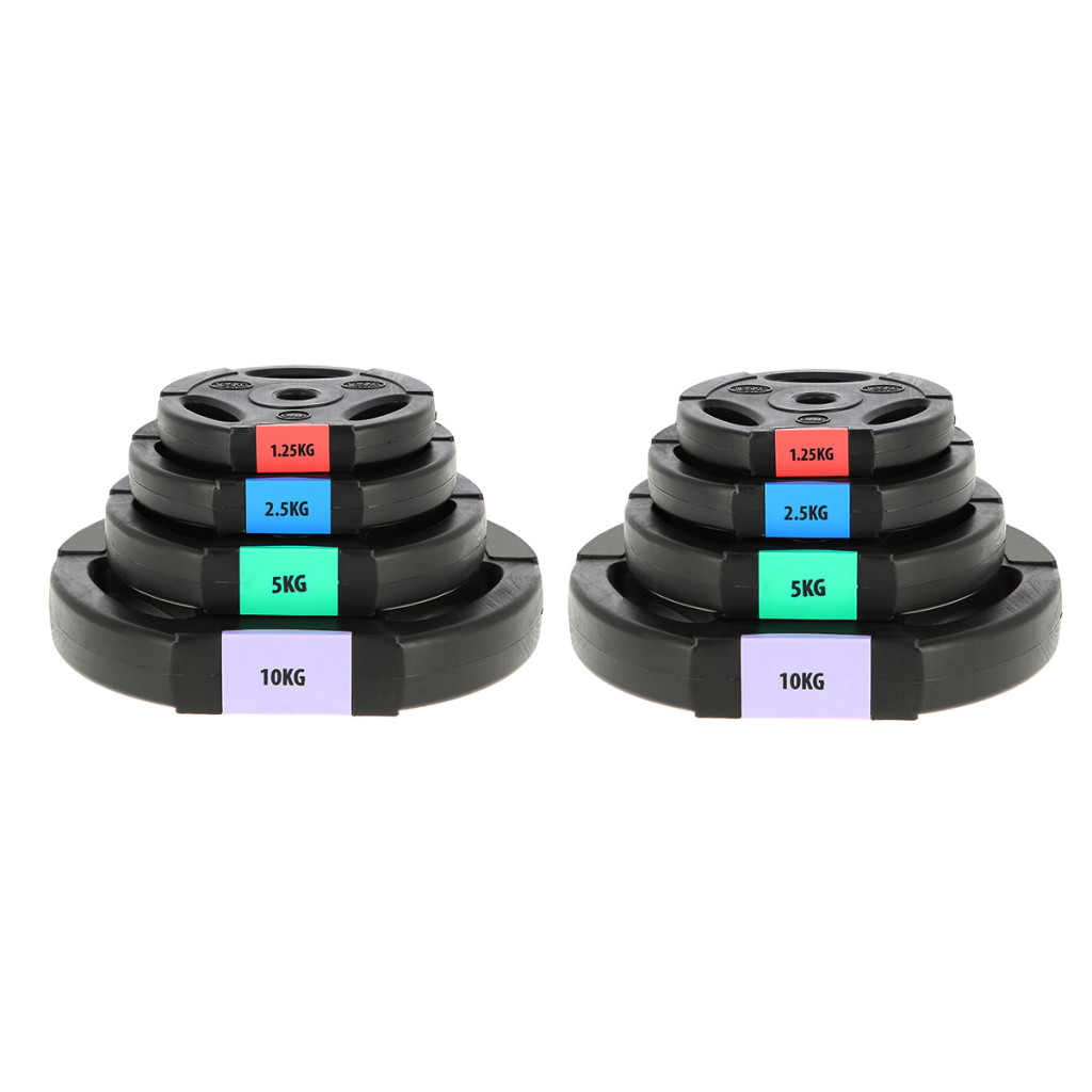 Sada obsahuje 1 skladaciu, nakladaciu os, 2 uzávery a 8 kotúčov rôznych váh.