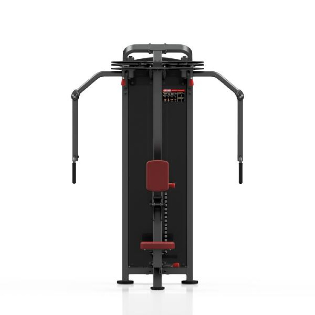 Stroj na posilnenie svalov ramien a chrbta MARBO MP-U224 je nekompromisným, profesionálnym vybavením pre Vašu posilňovňu. Pre výrobu boli zvolené oceľové profily 120x60x3mm a 80x40x3mm, ktoré zaručujú neočakávanú trvanlivosť. Závažie tvorí 16ks 10kg tehličiek. Celková váha závažia dodávaná so strojom je teda 160kg. Všetko nastavenie sa vykonáva červenými, pneumatickými kolíkmi. Sedadlo má štyri polohy, opierka má tri polohy. Polstrovanie je zo syntetickej kože zošité režnou niťou značky COATS vyplnené tvrdou penou, to všetko je na 3mm hrubej, oceľovej doske. Tichý chod zaisťuje zakrytie čiernym plastom, z prednej časti je kryt opatrený priezorom pre jednoduché nastavenie požadovaného počtu tehličiek. Stroj je navyše opatrený veľkou nálepkou, ktorá inštruuje cvičencov, aké cviky je možné na stroji vykonávať a ktoré skupiny svalov daný cvik posilňuje.