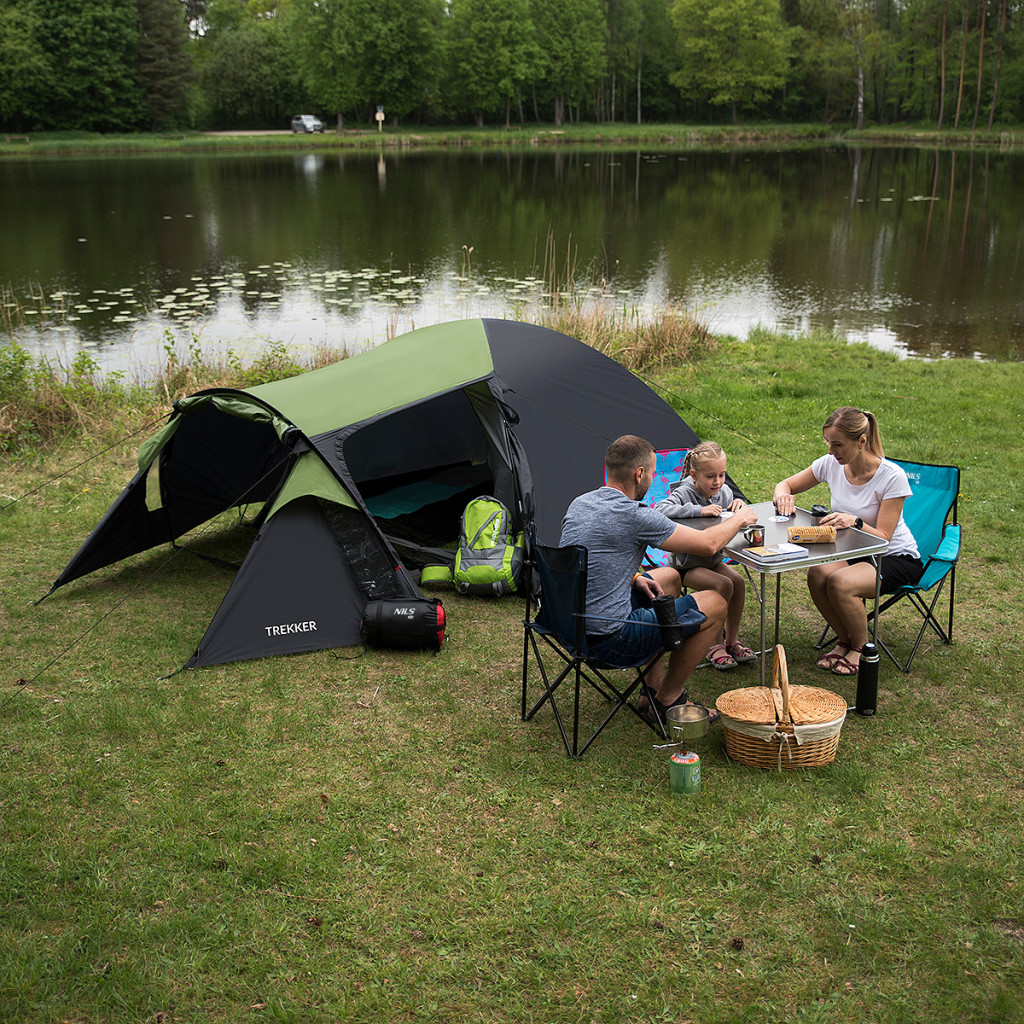 NILS Camp NC6012 Trekker je 4-osobový, turistický stan, ktorý oceníte pri potulkách prírodou, spaní pod "širákom" alebo pri krátkom pobyte v kempe. Stan Trekker je dvojplášťový a skladá sa z predsiene a spálne.