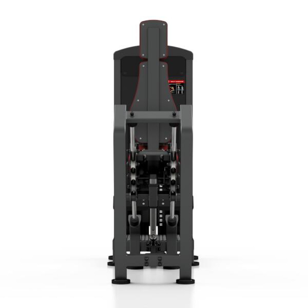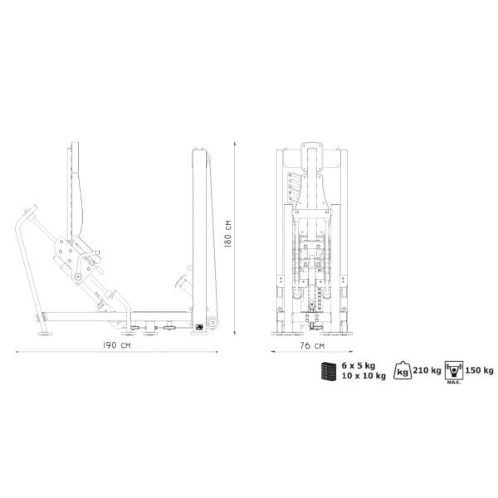 Posilňovač lýtok MARBO MP-U219 je nekompromisné, profesionálne vybavenie pre Vašu posilňovňu. Na výrobu boli zvolené oceľové profily 120x60x3mm a 80x40x3mm, ktoré zaručujú nečakanú trvanlivosť. Záťaž tvorí 6ks 5kg a 10ks 10kg tehál. Celková váha závažia dodávaná so strojom je teda 130kg. Vozík so sedadlom je vybavený inovatívnym systémom nastavenia východiskovej pozície vybavený plynovým piestom. Zo stroja tak nemusíte zostupovať pre zmenu východiskovej výšky. Stačí zatiahnuť za páčku, posunúť sa na pohodlné miesto a páčku uvoľniť. Ako opora nôh sú použité 2 robustné, profilované podpery. Polstrovanie je zo syntetickej kože zošitej režnou niťou značky COATS vyplnené tvrdou penou, to celé je na 3mm hrubej, oceľovej doske. Tichý chod zaisťuje zakrytovanie čiernym plastom, z prednej časti je kryt opatrený priehľadom pre ľahké nastavenie požadovaného počtu tehál. Stroj je navyše opatrený veľkou samolepkou, ktorá inštruuje cvičencov, aké cviky idú na stroji vykonávať a ktoré skupiny svalov daný cvik posilňuje.
