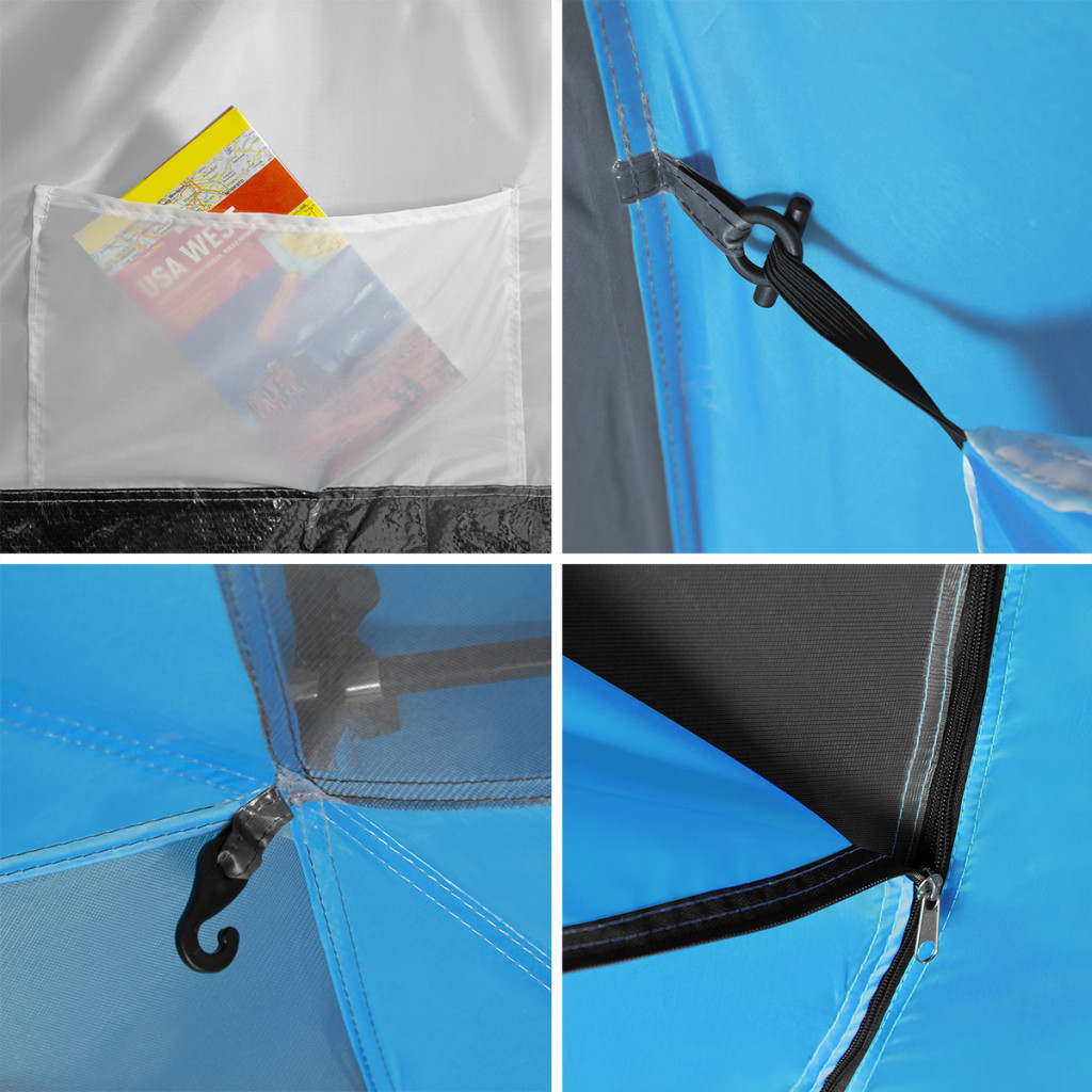 Štyri vnútorné vrecká umožňujú udržať poriadok a mať po ruke nevyhnutné veci. Háčik pod stropom v každej spálni slúži na zavesenie svietidla. A špeciálna podlaha v predsieni s odnímateľným prahom účinne zabraňuje prenikaniu piesku, prachu a blata dovnútra, zároveň uľahčuje čistenie interiéru.