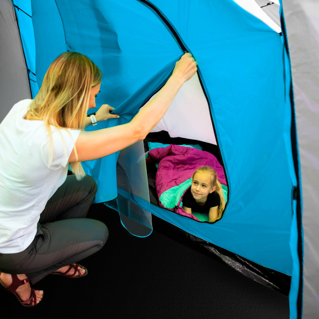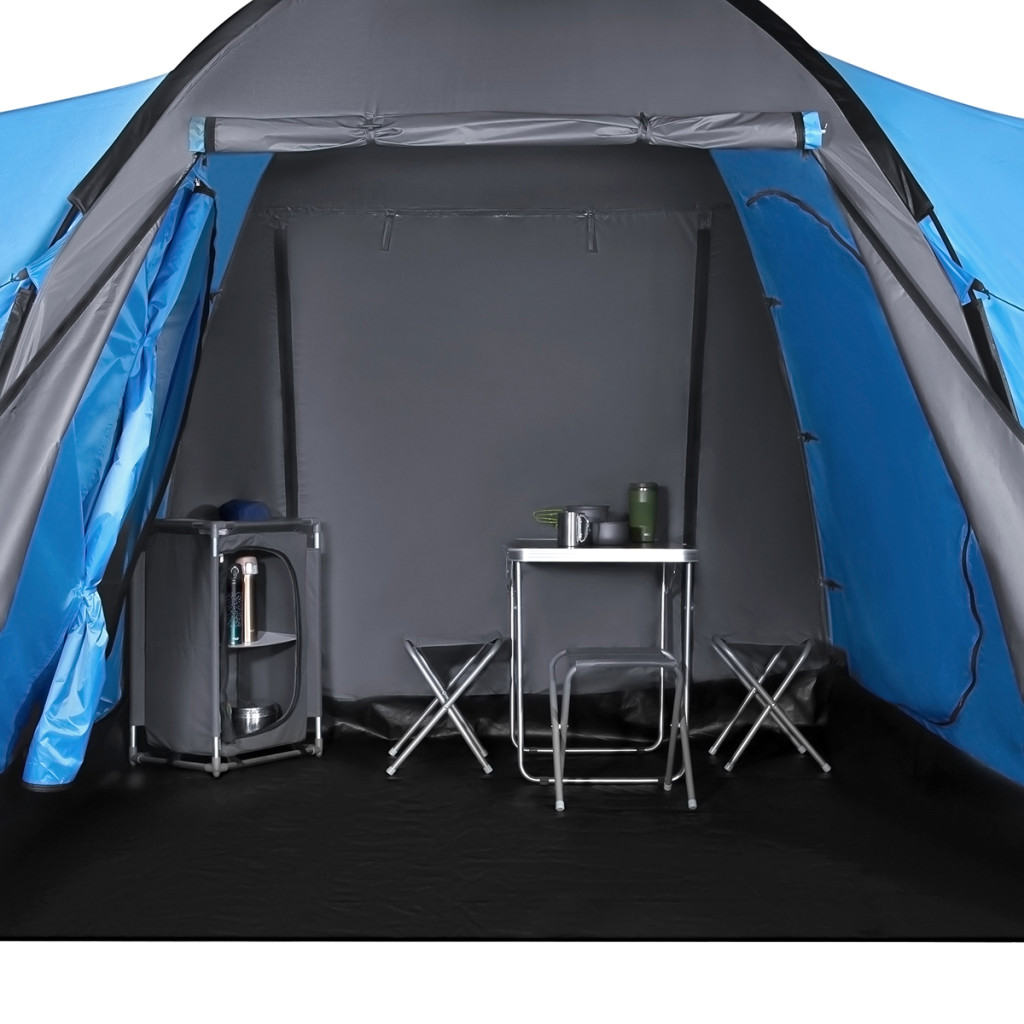 Highland ponúka dve samostatné spálne, každú pre tri osoby, a veľkú predsieň s rozmermi 210 × 210 × 200 cm. To je dostatok priestoru na pohodlný pobyt vnútri stanu – či už oddychujete, alebo sa schovávate pred dažďom.
