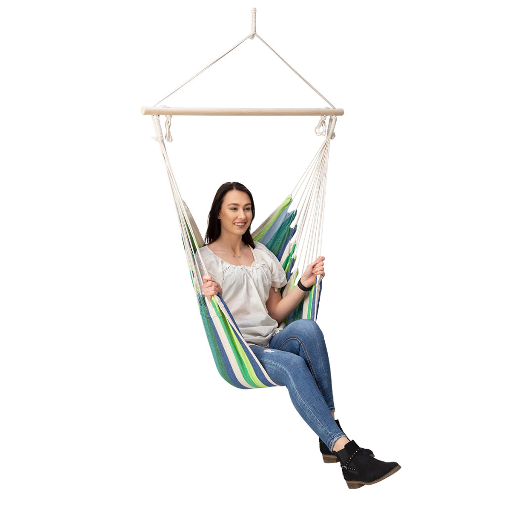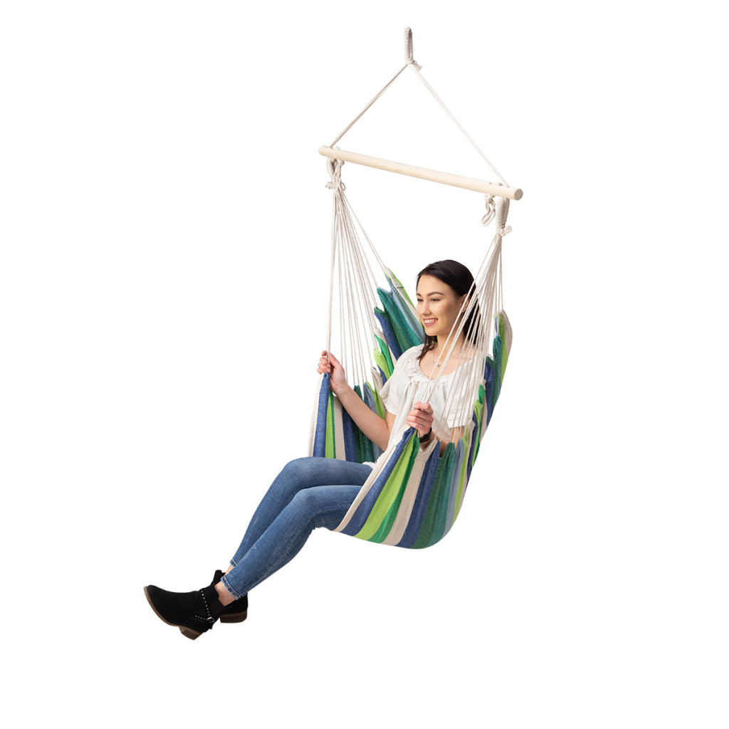 Konštrukcia brazílskeho kresla vychádza z hojdacej siete. Textilná časť je vyrobená z T/C plátna (kombinácia polyesteru a bavlny), ktoré je pomocou jednotlivých lán tvarované do tvaru kresla. Lany prechádzajú cez drevenú priečku a zbiehajú sa do závesného oka. Kreslo stačí vybrať, zavesiť kdekoľvek do vhodnej výšky a už môžete odpočívať napríklad pri čítaní obľúbenej knihy. Použité materiály zaručujú nielen priedušnosť a pohodlnosť kresla, ale aj jeho dlhú životnosť a odolnosť.