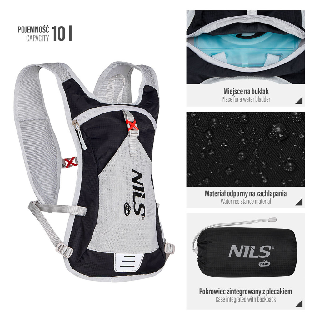 NILS Camp NC1708 Tripper je ľahký batoh s objemom 10 litrov, ktorý je ideálny na jednodňové výlety, dlhé prechádzky, jazdu na bicykli alebo behanie.
