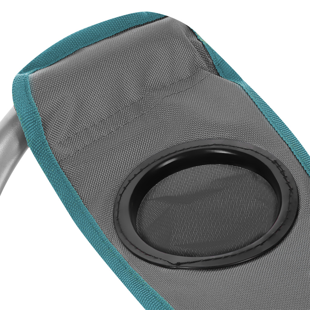 Lakťové opierky majú možnosť regulácie výšky jednoduchým posunom zadnej časti po profile konštrukcie.Pravá opierka lakťa je opatrená košíkom, do ktorého sa pohodlne zmestí menšia fľaša, alebo vysoký pohár. Pre ľahké prenášanie je možné kreslo zložiť do dodávaného vaku s popruhom cez rameno.