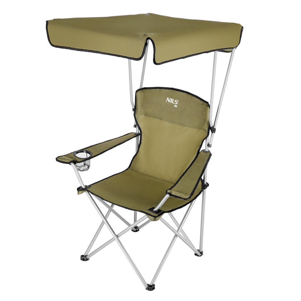 Skladacia, kempingová stolička so strieškou NILS Camp NC3087 je ideálna k vode, na ryby, na festival, alebo napríklad na dovolenku pod stan. Zložiteľná strieška ochráni pred slnečnými lúčmi alebo drobnou prehánkou.