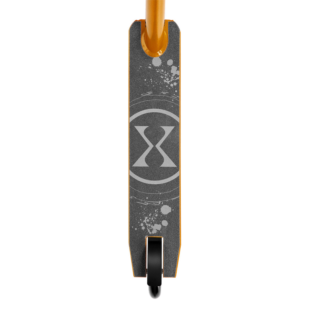 Freestylová kolobežka nemá žiadny skladací mechanizmus ani systém nastavenia výšky riadidiel - tieto typy riešení by mohli oslabiť celú konštrukciu, čo samozrejme nie je žiaduce pri produkte, kde je odolnosť zásadná.