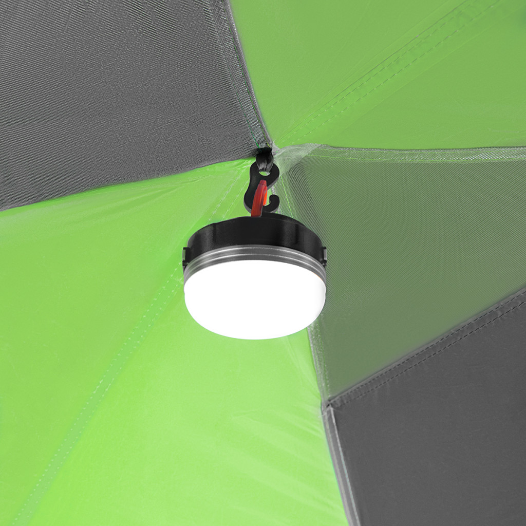 Navyše je stan vybavený štyrmi vnútornými vreckami, kam si odložíte svoje veci, a dvomi úchytmi pod stropom, vďaka ktorým môžete zavesiť lampu.