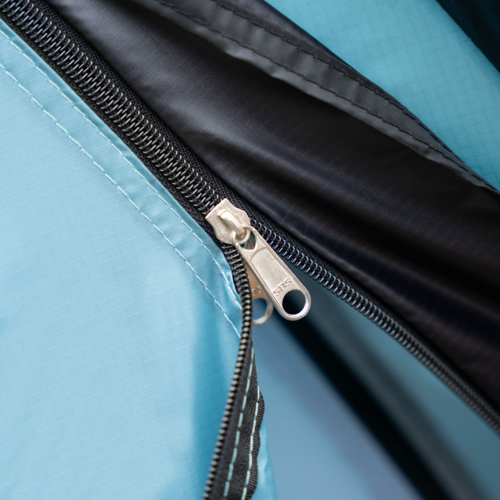 Dvojvrstvová polyesterová tkanina s vodeodolnosťou 3000 mm H2O a podlepené švy poskytujú spoľahlivú ochranu pred nepriaznivým počasím. Priedušné vnútro zaisťuje pohodlnú cirkuláciu vzduchu, zatiaľ čo podlaha s vodeodolnosťou 4000 mm vás udrží v suchu a pohodlí.