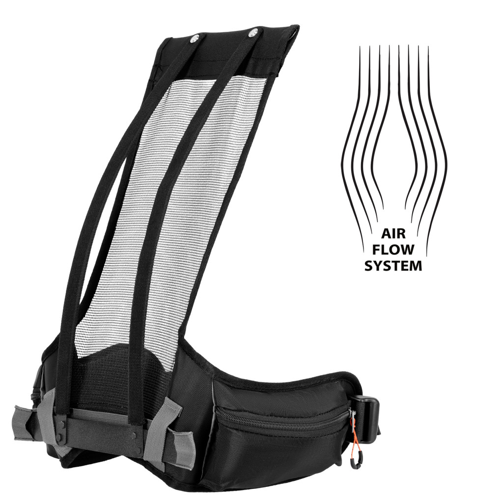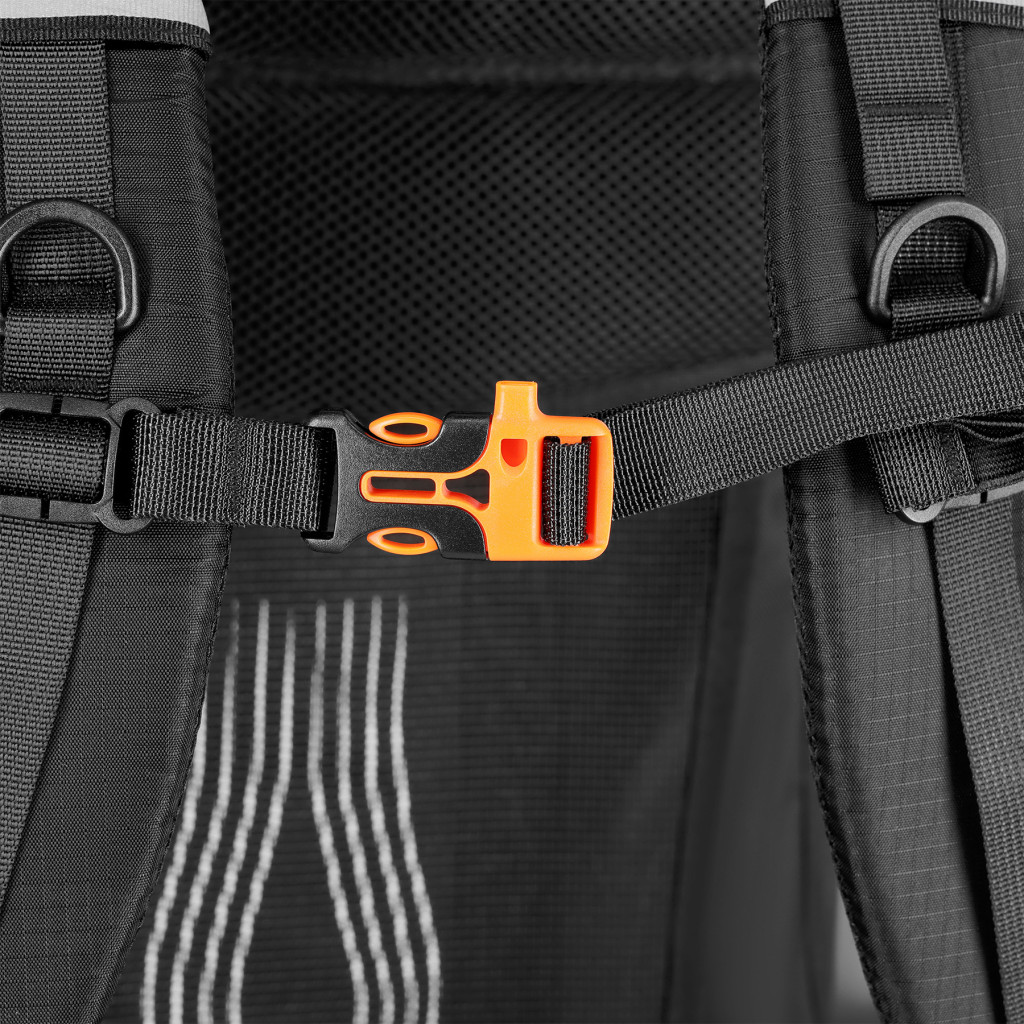 Ergonomický dizajn batohu spolu s nastaviteľnými popruhmi umožňuje dokonalé prispôsobenie telu užívateľa, minimalizuje zaťaženie chrbtice a zvyšuje celkový komfort nosenia. Nosný systém plecniaka tvoria nastaviteľné ramenné popruhy s mäkkým polstrovaním, ktoré znižujú riziko odrenia ramien. Ramenné popruhy sú široké a tvarované tak, aby rovnomerne rozložili hmotnosť na ramená, čo výrazne zvyšuje pohodlie najmä pri dlhých a náročných výpravách. Batoh je tiež vybavený početnými úchytmi, ku ktorým je možné pripevniť ďalšie vybavenie, ako sú trekové palice alebo spací vak, čo ešte zvyšuje jeho funkčnosť.