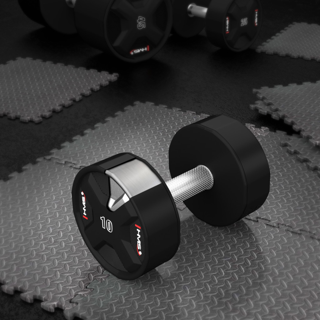 Jednoručné činky HMS HPC sú vyrobené z oceľového jadra potiahnutého liatym polyuretánom (CPU). HPC sú výbavou vytvorenou s ohľadom na najnáročnejších používateľov. Výnimočná odolnosť, estetické prevedenie a pokročilé vlastnosti z nich robia ideálnu voľbu pre tých, ktorí očakávajú spoľahlivosť počas intenzívnych tréningov.
