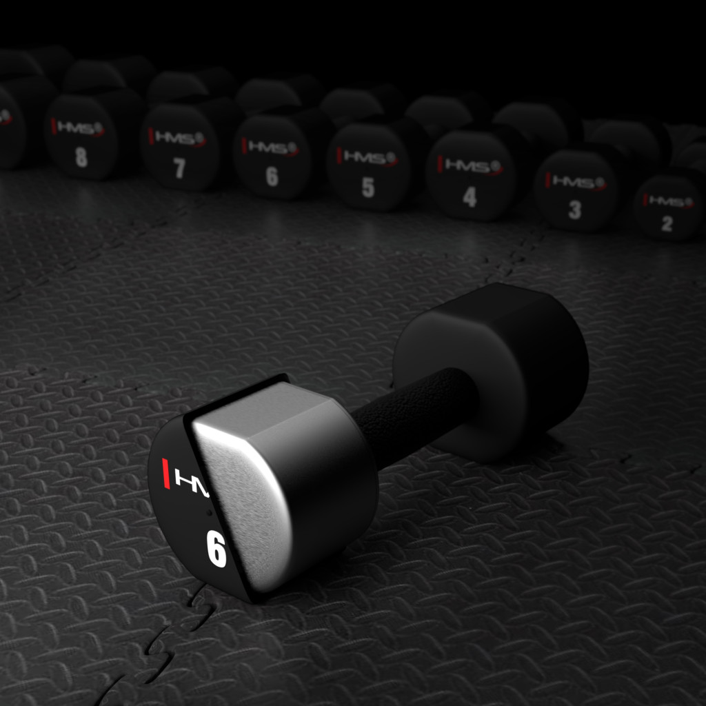 Činky HPT od HMS sú pokryté čiernou vrstvou termoplastického polyuretánu (TPU), čo je materiál známy svojou pružnosťou a zároveň vysokou tvrdosťou. Vďaka tomu sú odolné voči otrasom, poškriabaniu a nárazom, čo zaručuje dlhú životnosť bez straty kvality. Polyuretánový povrch je bez zápachu a chráni podlahu pred poškodením, čím minimalizuje riziko škrabancov alebo hluku počas cvičenia.