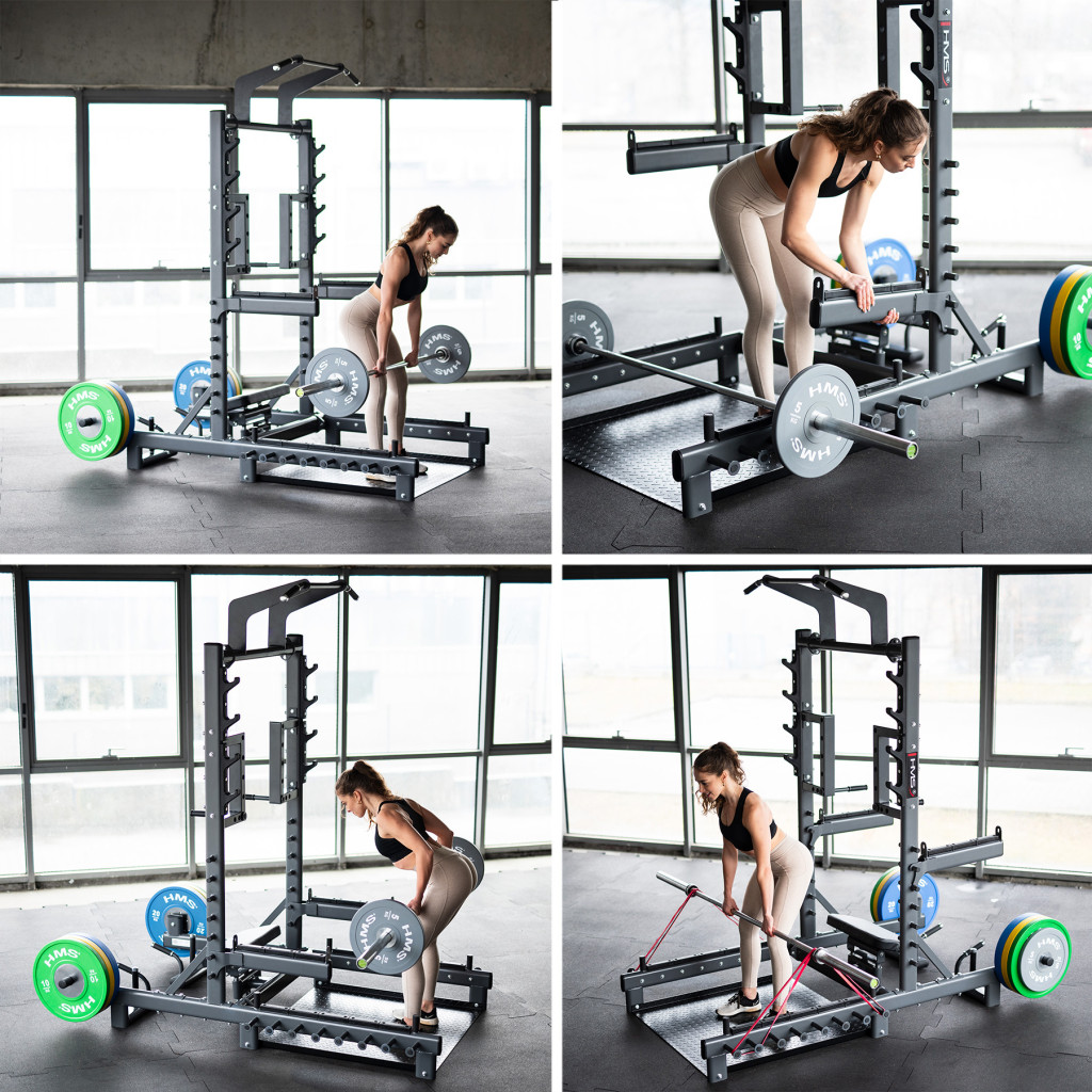 SMP01 je vaše nové tréningové centrum, ktoré vám umožní nielen vykonávať hip thrusty alebo mŕtvy ťah. Tento prístroj je navyše vybavený hrazdou na príťahy, úchytkami na dipy, hákmi na činku, bezpečnostnými zarážkami, tŕňmi na skladovanie závažia a čapmi na prácu s odporovou gumou. Vďaka prepracovanej konštrukcii a širokým možnostiam nastavenia sa SMP01 hodí ako do domácej posilňovne, tak do pokročilejších tréningových priestorov.