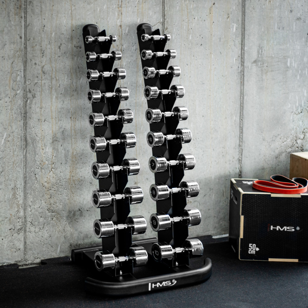 Str37 je robustný a funkčný stojan na činky, ktorý umožňuje pohodlné, organizované a bezpečné skladovanie výcvikového zariadenia. Vďaka vertikálnemu dizajnu a kapacite až 20 činkov zaberá malý priestor a zároveň zaisťuje rýchly a ľahký prístup.