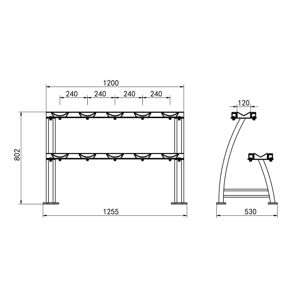STR38 stojí dve úrovne, aby uložil až 10 párov činiek. Vďaka mierne nakloneniu povrchu je priľnavosť činiek pohodlná a nevyžaduje nadmerné ohýbanie zápästia, čo znižuje zaťaženie kĺbom a zvyšuje pohodlie.